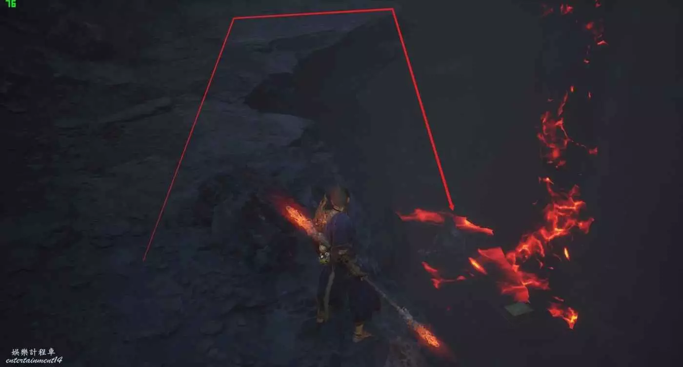往前走一段路到這塊凸出的石頭跳下去就能看見