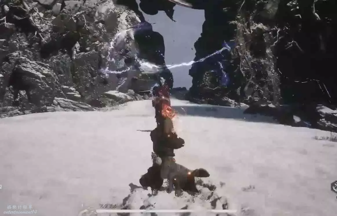 但如果在這個石塊左右開始蓄力去打一個背身亢龍星君是不會放技能的,我個人感覺這應該是個bug,因為此時的亢龍星君只有技能動作,沒有技能傷害,而且有的時候即使是背身亢龍星君還是會正常釋放技能的…