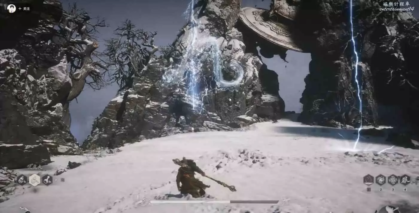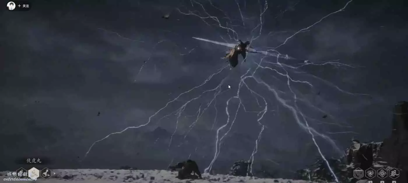 不過也無所謂,因為這個雷電是比較好躲的,我們一直轉圈跑圖就行,之後BOSS會進入到一個較長時間的虛弱狀態,如下圖所示,我們可以看到她好像有一些累了,此時我們近身繼續舞花棍攢棍式,當BOSS抬起頭來的時候接定身法,敲出一個四棍式。