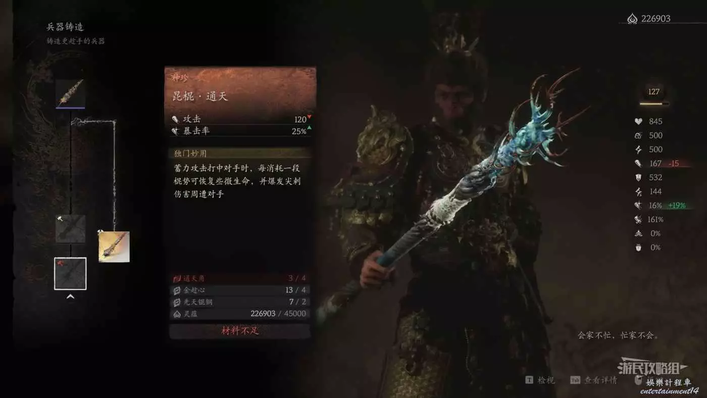 黑神話 悟空 昆棍通天獲取方法 2 9 月 2024-09-02 廣告 作者:瑞破受氣包 來源:遊民星空 神珍-昆棍·通天 獲取方法:在進入二周目拿到通天角後即可在土地廟解鎖鑄造(通天角最早可以在第二回【黃風嶺-隱·斯哈裡國】擊敗BOSS蝜蝂獲得)。