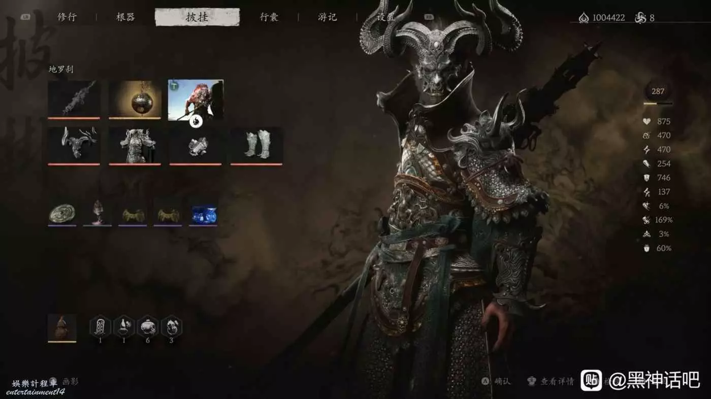 葫蘆和大聖套帶一樣的,法寶換成定風珠,常駐2%減傷,珍玩帶上月玉兔和日金烏常駐3%減傷,加上喝酒後45%就有50%,精魄選擇地羅刹,和牛魔王套被動很契合,挨打10%減傷就有60%了。雖然減傷比大聖套少,但是牛魔王套有更高的基礎防禦,帶上混鐵棍傷害也會更高,並且霸體非常好用,特別適合識破,再加上棍勢容易攢,配合識破加點棍勢越高傷害越高。而且大聖模式也並不能一直觸發,但大聖套的珍玩法寶可選性更多。