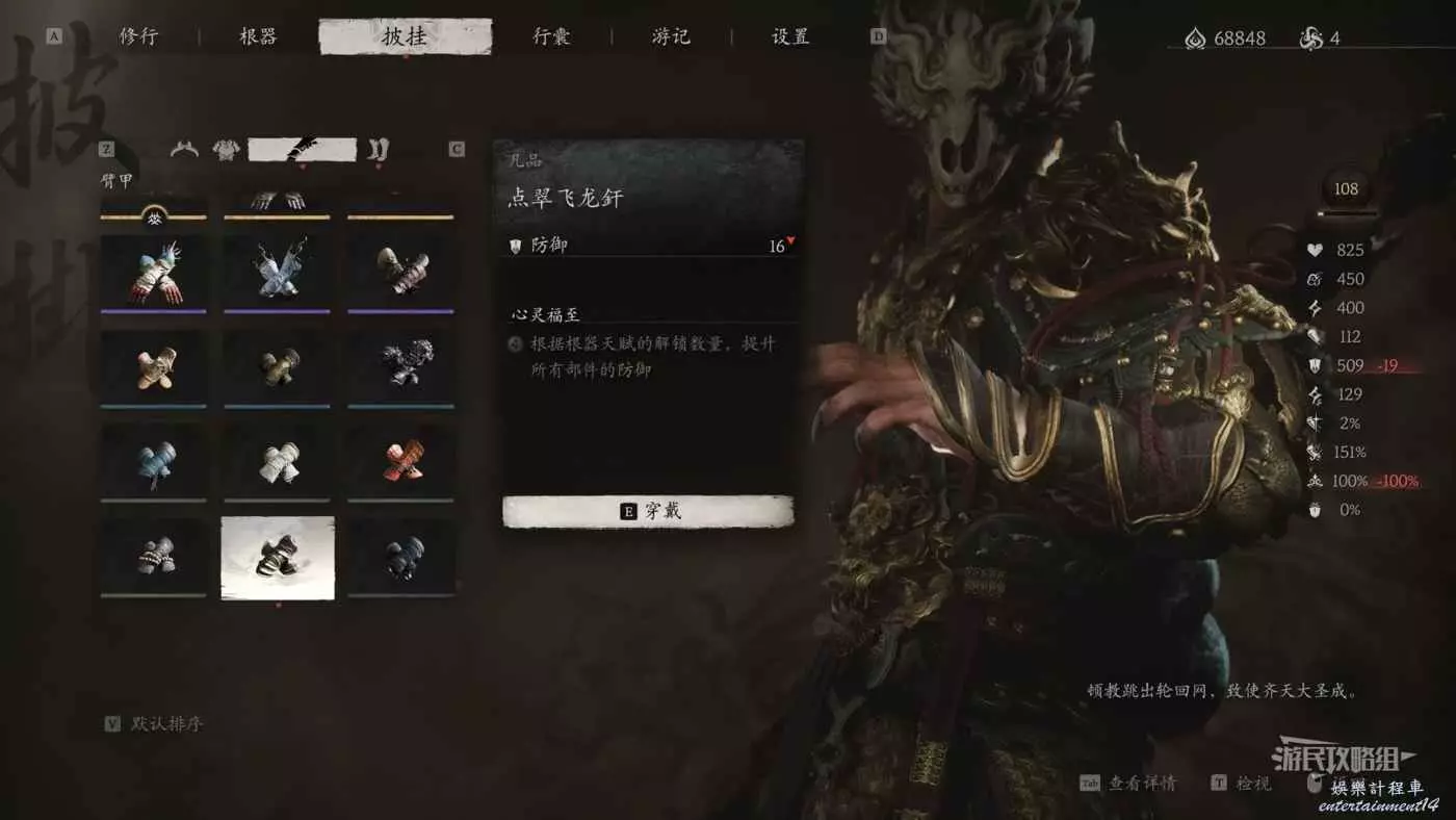 黑神話 悟空 點翠飛龍釬獲取方法 3 9 月 2024-09-03 廣告 作者:瑞破受氣包 來源:遊民星空 凡品-點翠飛龍釬 獲取方法:從第六回【花果山-山腳-青嶂道】土地廟出發,召喚筋斗雲往剛進本回時的初始位置方向走,在初始位置後面的山坡上方樹下可以看到寶箱,開啟寶箱即可獲得。
