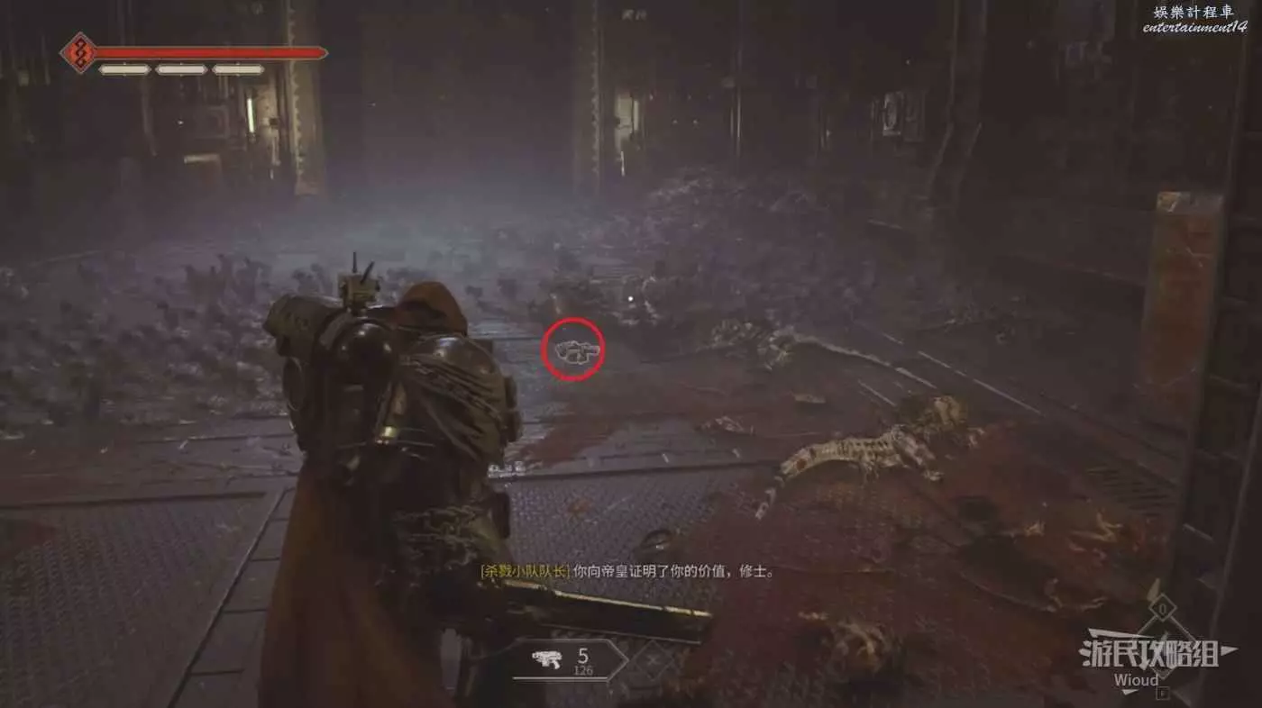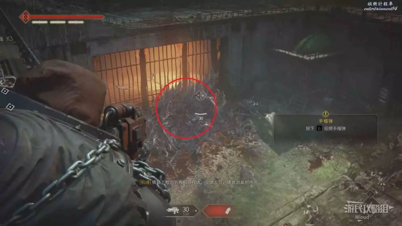 最終區域是一個四方的露台,先與控制台互動,然後原地轉身,拾取後面的手雷等待蟲群過來。