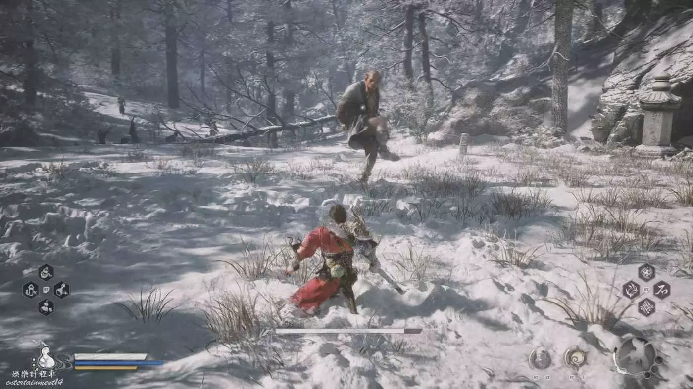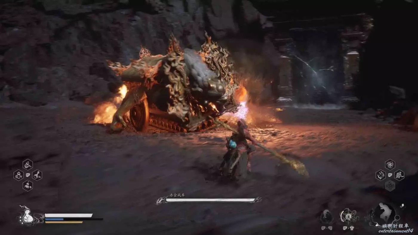 《黑神話:悟空》在關卡設計上看得出來有很多參照魂like遊戲(惡意)的影子:黑風山只是高處沒法對付的弓箭手,從黃風寨開始,什麼箭雨、轉角遇到愛之類的都是家常便飯;小西天加入了浮屠界獨木橋摔死你;盤絲洞更是各種惡意大集合;火焰車則是遠端火炮洗禮也有了。