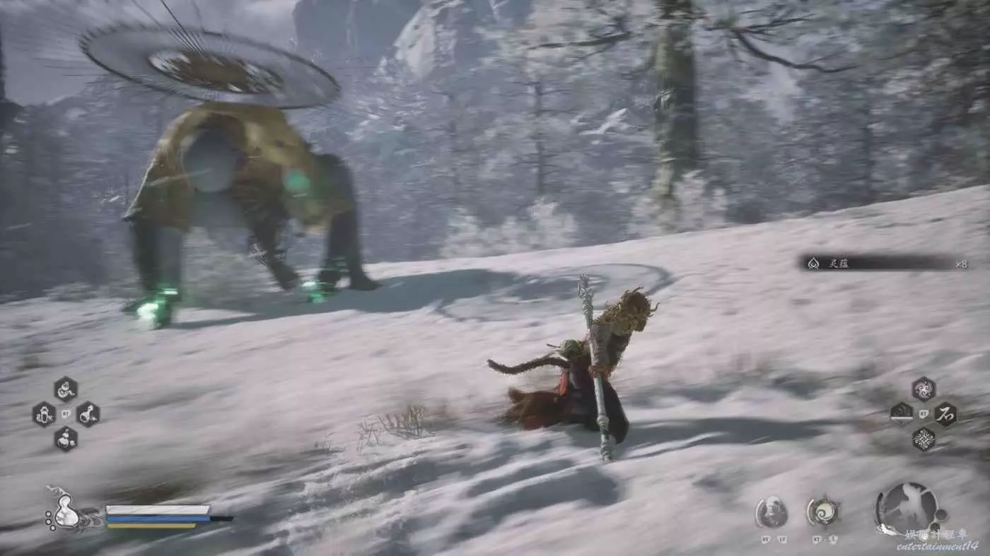 第二是圍繞著法寶、妖怪技和法術CD的文章有做,但是不多,這方面可惜的原因在於:其實從“寬度”而言,《黑神話:悟空》有太多的內容——遊戲十種變身技、近百的妖怪技甚至都還包括各種派生的變化,比如刀郎在攢滿能量條之後隨著閃避+方向鍵的不同,能打出三種效果各異的重斬;第三回的“不能”精魄伴隨你輕棍的不同段數打出,更是有4種衍生效果。