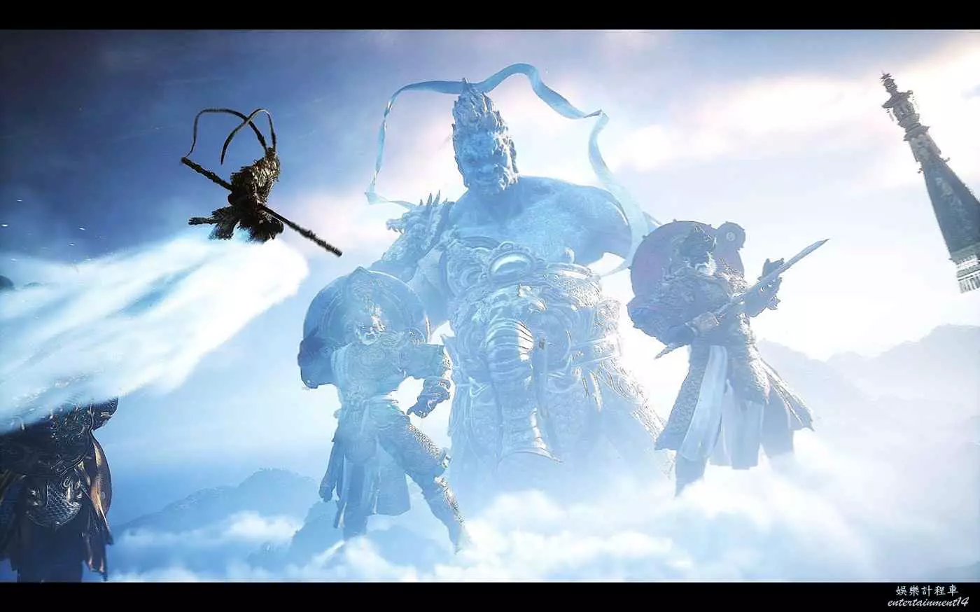 當然,之後是英雄隕落,天命猴重走西游路,去收集大聖遺落的6處靈根的故事。這個部分多少有一些今何在《悟空傳》的影子,屬於“人化”的西遊世界——中國的神話傳說相對於希臘或者北歐,更強調神佛的“神性”,而明末的《西遊記》多少有一點借天庭諷時局。