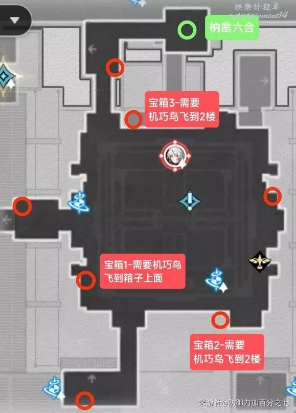 崩壞 星穹鐵道 競峰艦寶箱收集攻略 11 9 月 2024-09-11 廣告 作者:防禦力加百分之七 來源:米遊社論壇 第一層 第一層-上半部分 第一層-主體部分 寶箱1位置 寶箱2位置 寶箱3位置 枘鑿六合解法 第二層 第二層-右上角 操作機巧鳥拿到這兩個寶箱 第二層-主體部分 引航羅盤解法 枘鑿六合解法 第三層 枘鑿六合解法 引航羅盤解法 至此,競鋒艦地圖18個寶箱,3個枘鑿六合,2個引航羅盤已全部收集,如果不會到達第三層兩側觀眾席的話可以從這兩個地方乘坐電梯前往