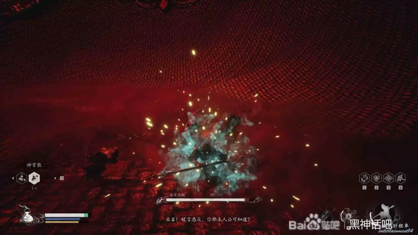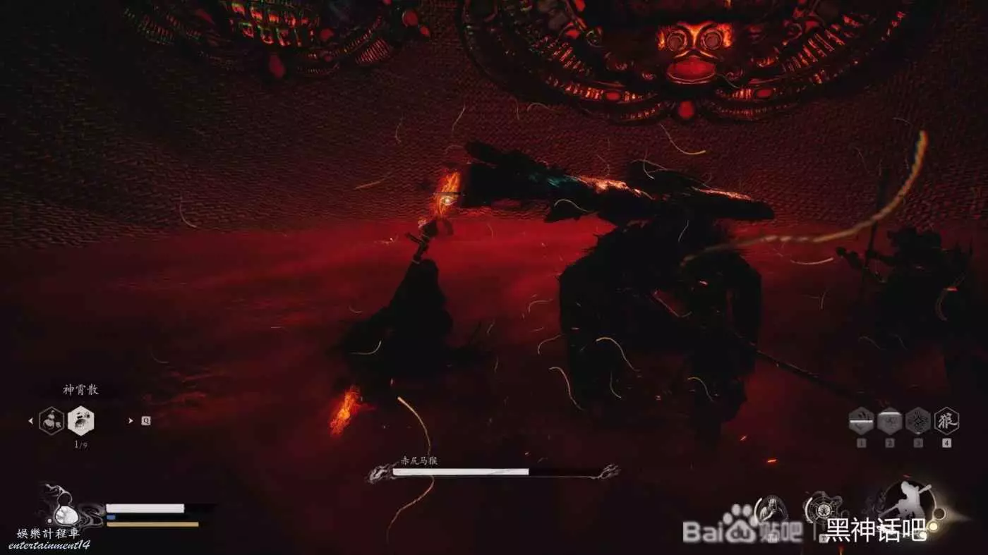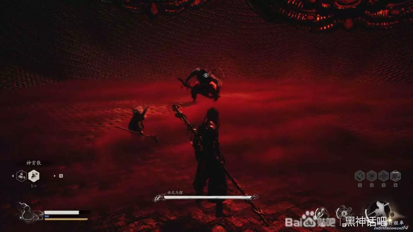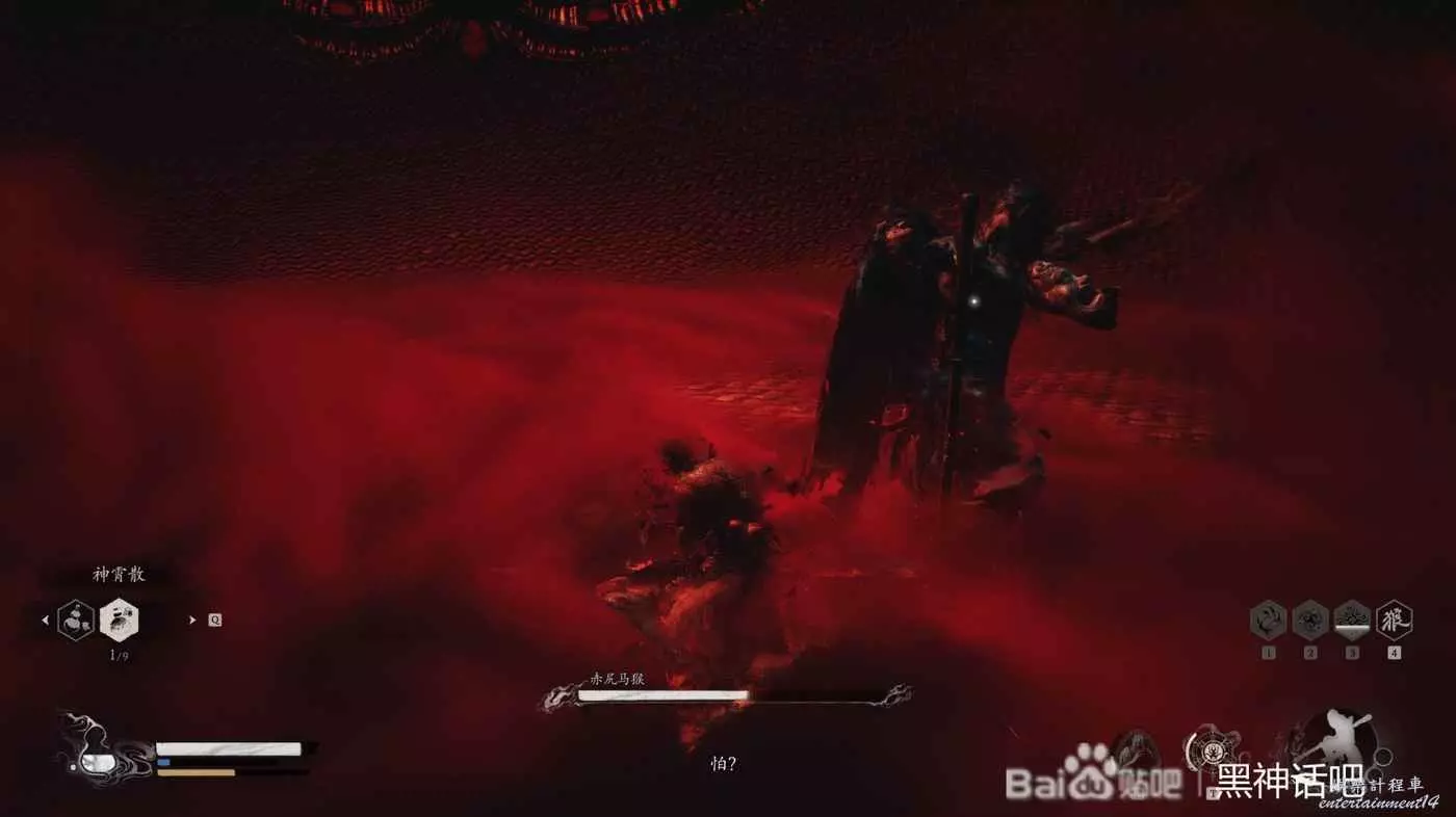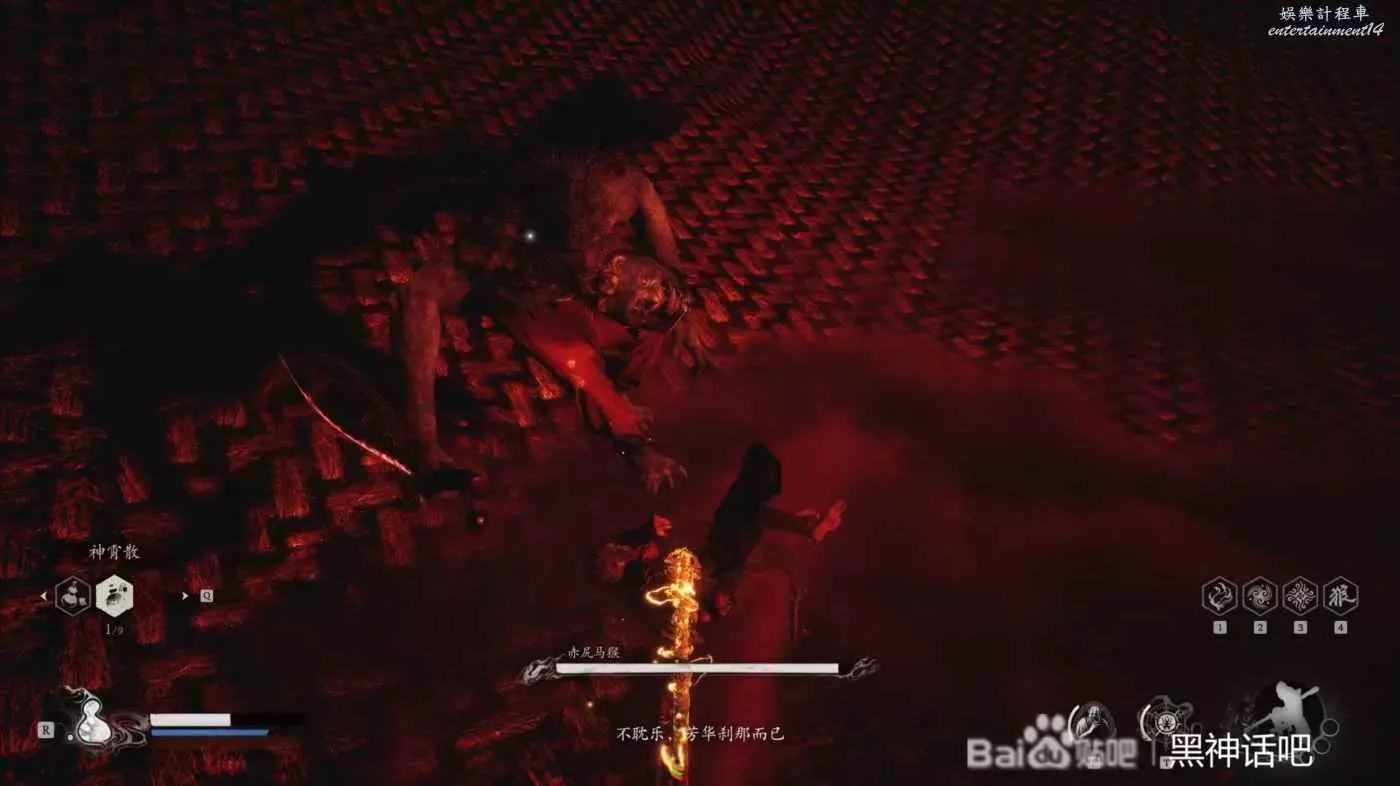我們在打完了不空後就立馬跑向了黃眉所在的殿前,直接進去硬剛黃眉,一階段還是比較好打的,只要注意躲開他的狼牙棒和全程放電,基本就能一次過去,只不過注意一下他的傷害,記得嗑藥。然後擊敗他後,就可以進入到黃眉的人種袋裡面,開始和第三階段的赤尻馬猴對戰了,所以今天為大家帶來它的打法介紹。