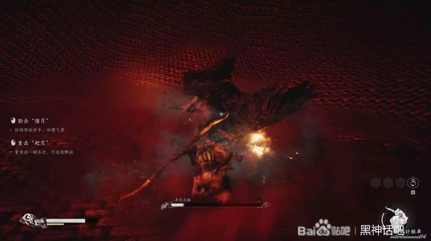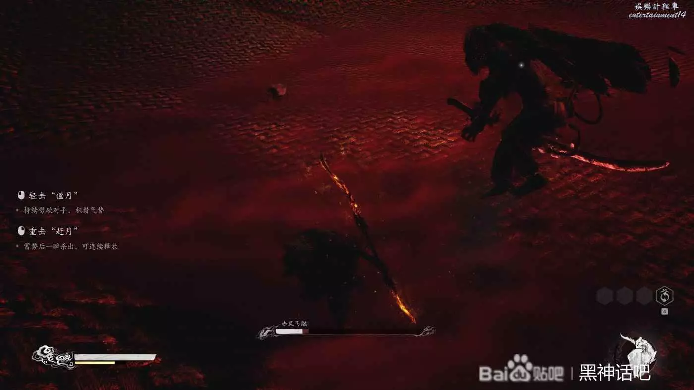 赤尻馬猴血條剩下三分之一左右的話,會在原地使用出閃身,然後出現在我們的身後,劈砍下來再揮出一道刀氣,還有一次三連瞬,在我們背後出現揮刀,直接就是閃避躲開即可。