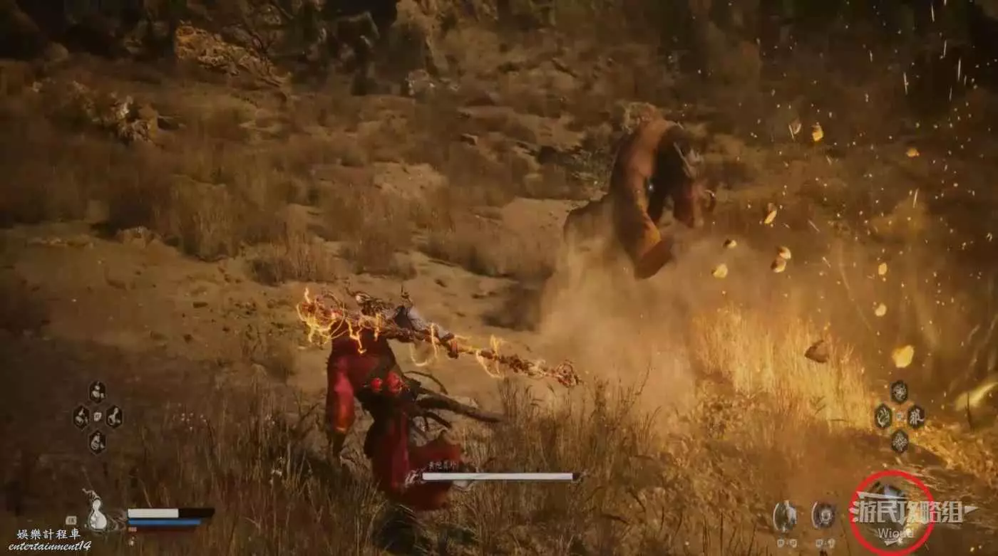 與黃袍員外的戰鬥場地很大,而且黃袍員外沒有有效的追擊手段,因此直接一邊跑一邊蓄力重棍,一次一次重擊敲完就跑直到耗死黃袍員外即可。