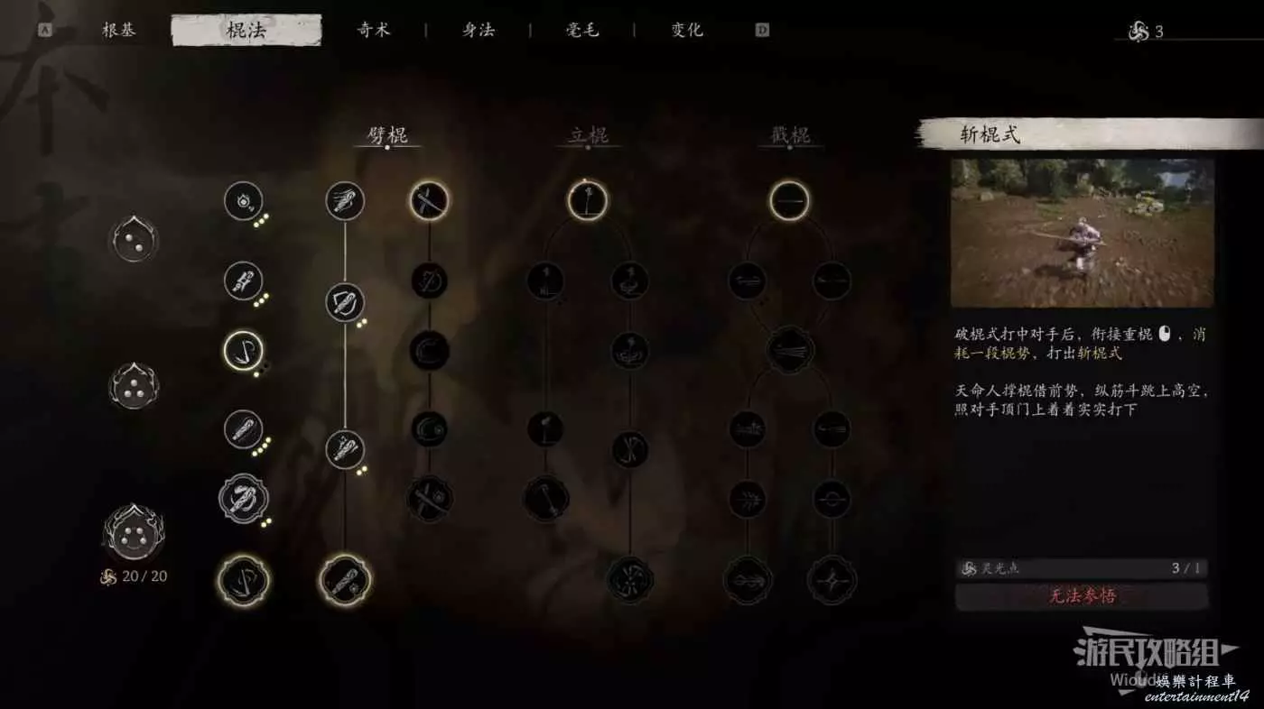 棍法選擇劈棍,點到20點啟動四棍勢。