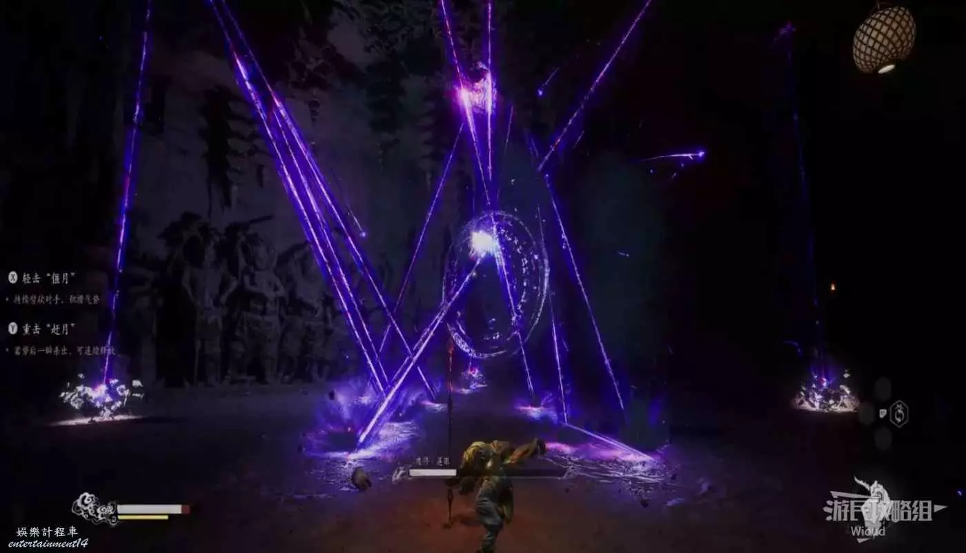 我們直接使用聚形散氣追著紫色的光線跑到蓮眼的旁邊,然後開始使用棍花打蓮眼蓄力棍勢。