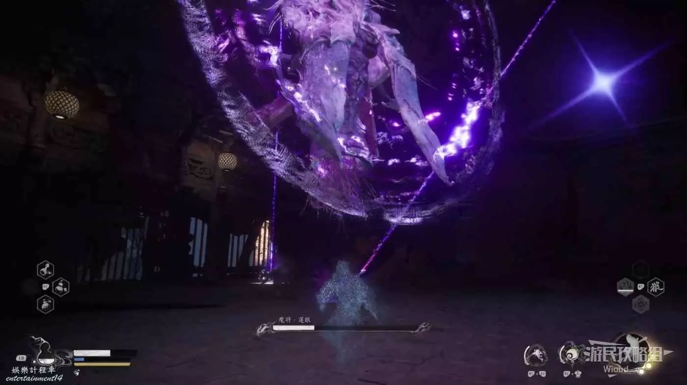 魔將蓮眼主要通過法術攻擊玩家,有連續的飛彈攻擊、射線掃射,能夠移動的光波等,初見可以先感受一下躲避的節奏。