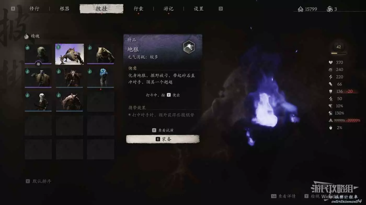 精魄攜帶地狼,地狼的被動可以幫助我們更快的攢棍勢,其他以自身喜好為主即可。