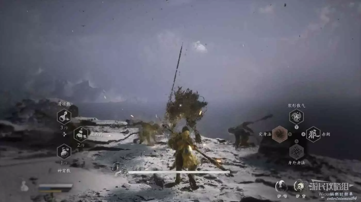 法寶攜帶定風珠,精魄攜帶幽魂,棍法選擇劈棍,點20技能點啟動四棍勢,法術攜帶身外身法、定身術、聚形散氣,法術加點主加身外身法即可。