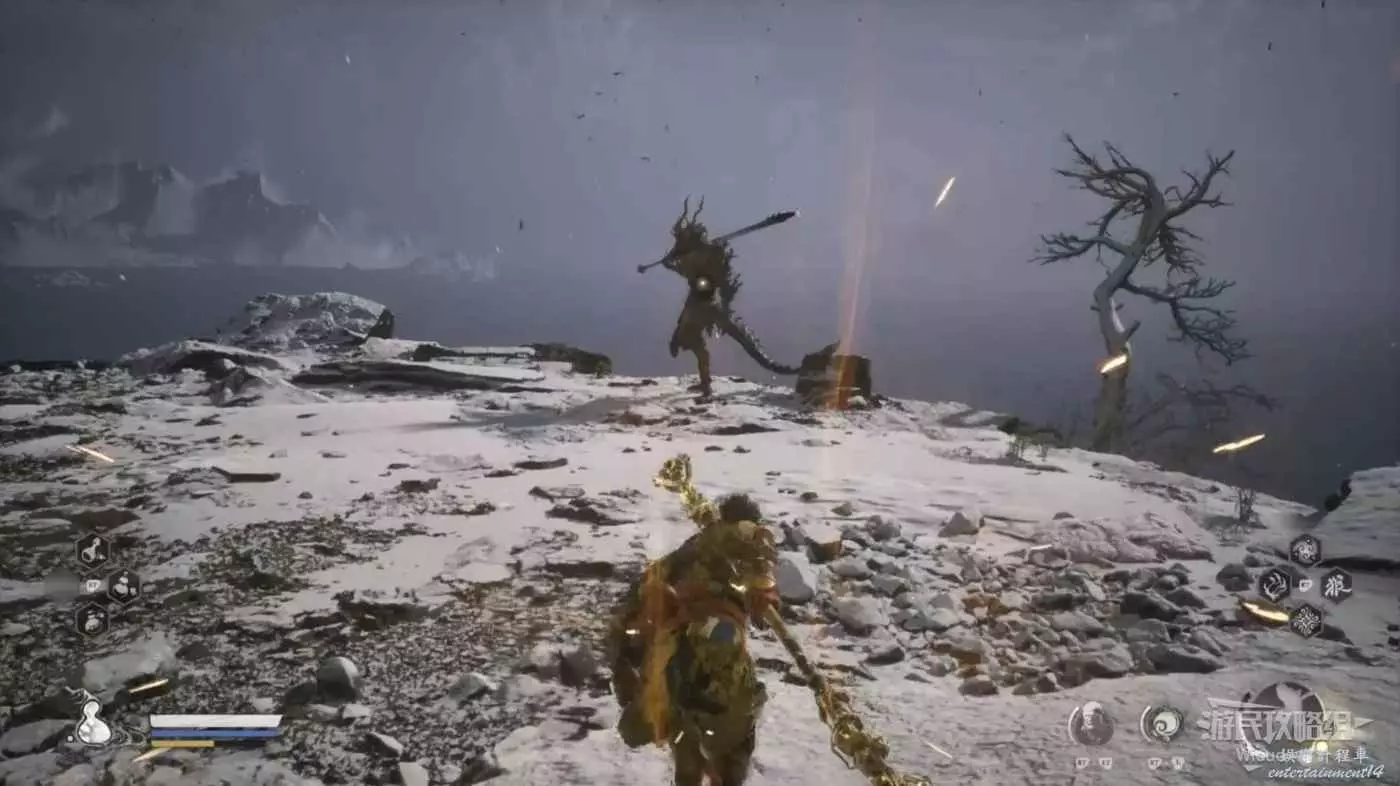 通過重擊的硬直原地使用身外身法與定身術開始群毆青背龍,它的韌性不高,基本能硬控大半管血,中間記得穿插四棍勢的重擊。