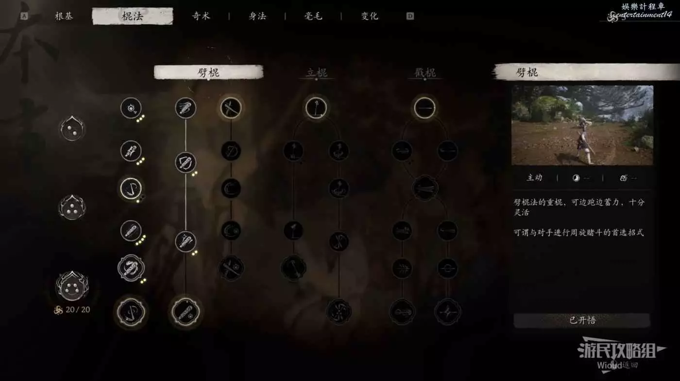 只需要棍法選擇劈棍,然後加20點啟動四棍勢。