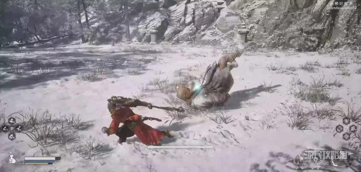前滾翻→倒轉腿→踢腿:只要看到他向前翻滾,直接石化,他必定會踢到石頭上,如果閃避可能要稍微慢個0.5秒。如果拉開距離,要小心後接的踢腿有一段小位移,距離太近會被踢到。