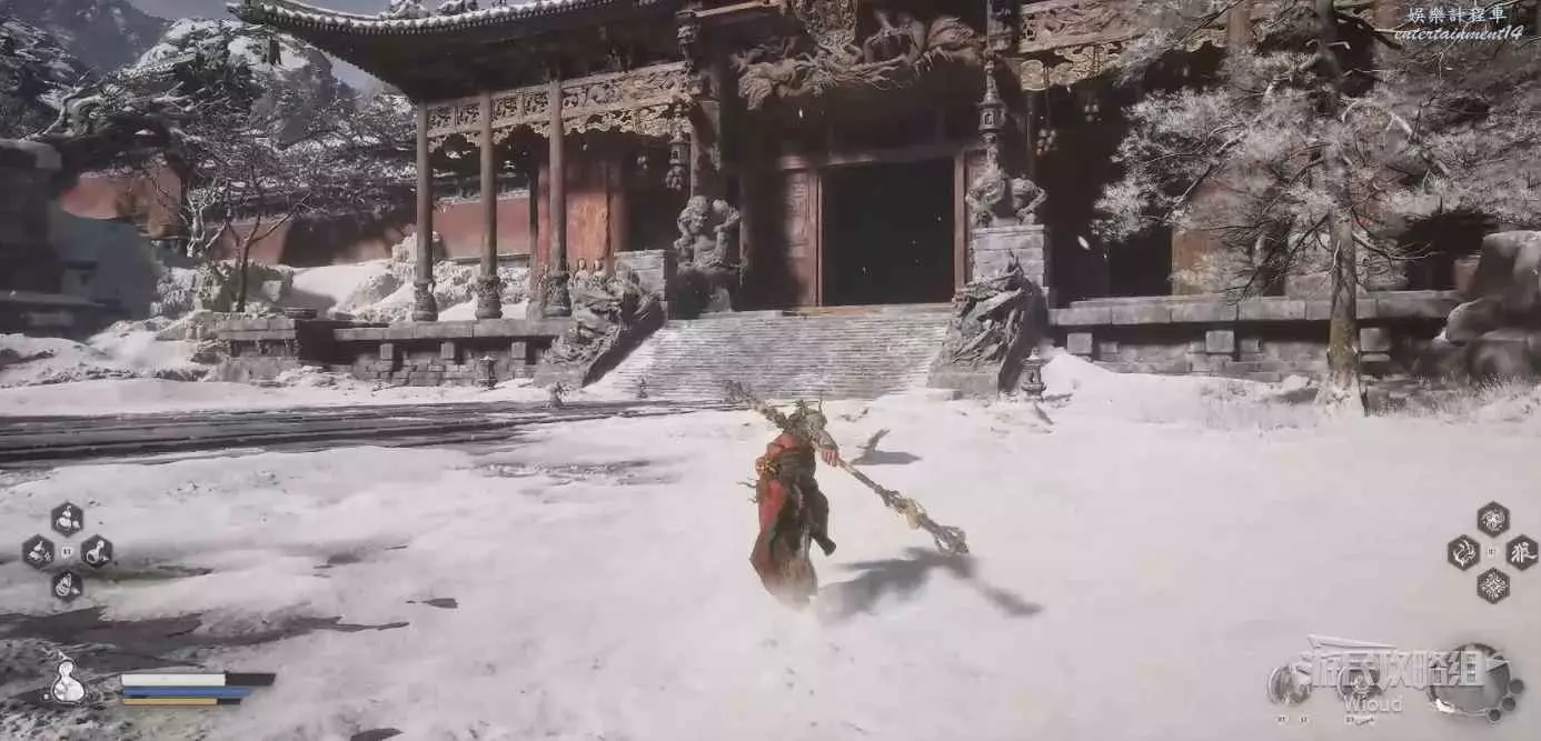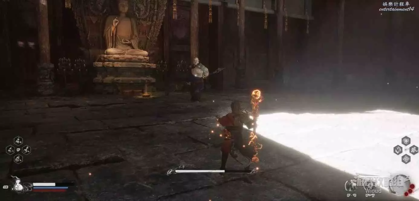 不淨用的武器和沙僧一樣,而且沒有遠距離攻擊招式,直接使用劈棍奔跑蓄力拉開距離,靠近劈下即可。