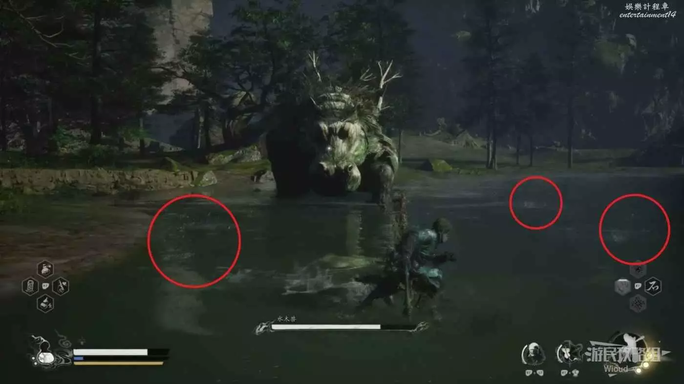 但需要注意水木獸兩邊一直在跳動的水面,玩家一旦踏入這些區域就會被嚴重減速,露出巨大破綻,出現這種情況就拉遠距離等待水木獸主動追上來就行了。