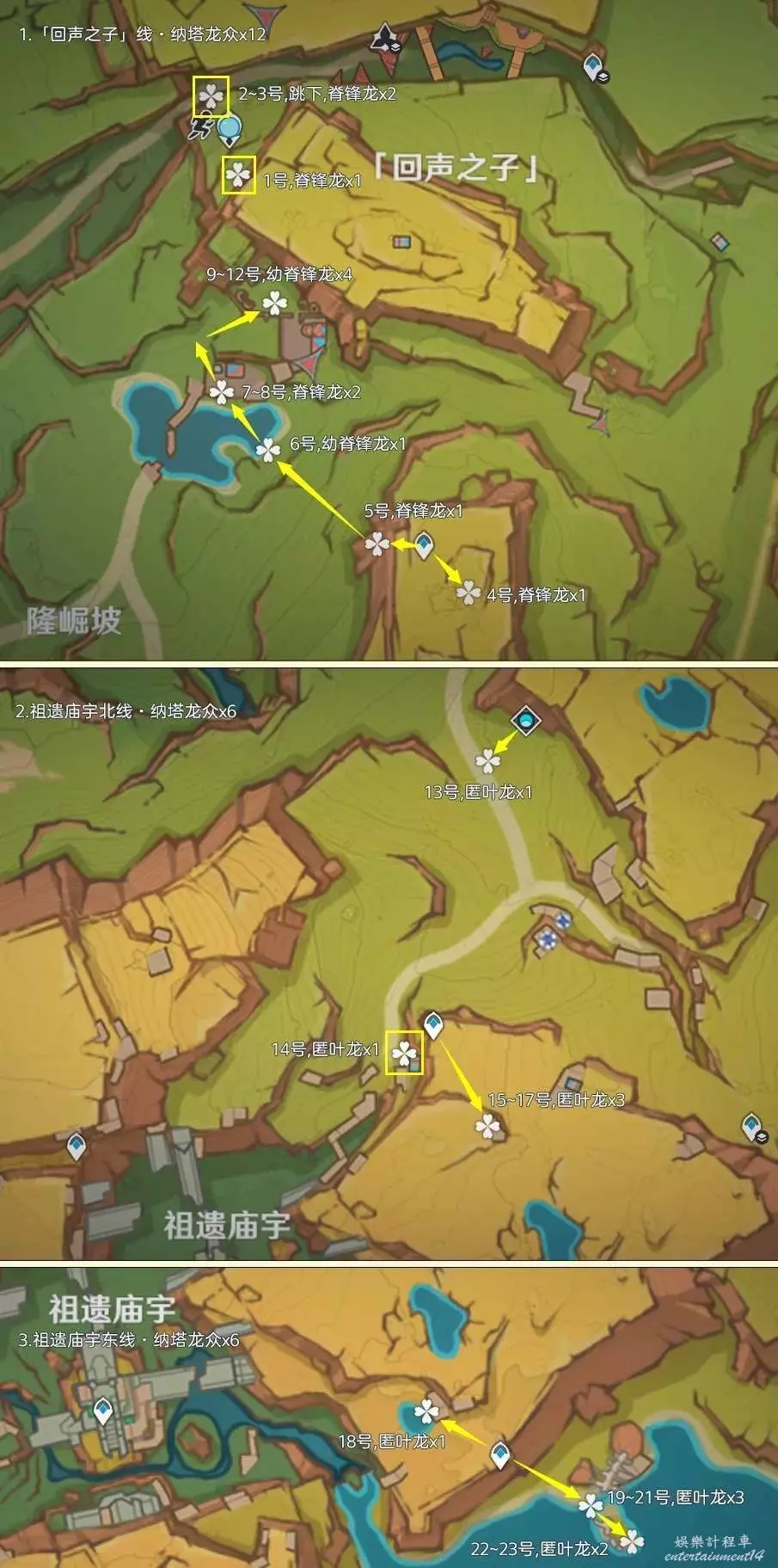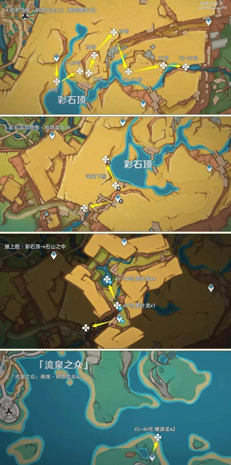 納塔龍眾目前只分佈在納塔5.0版本更新的地圖中,只挑高效率點位,總共有101只,後續有點位更新會繼續新增進來;