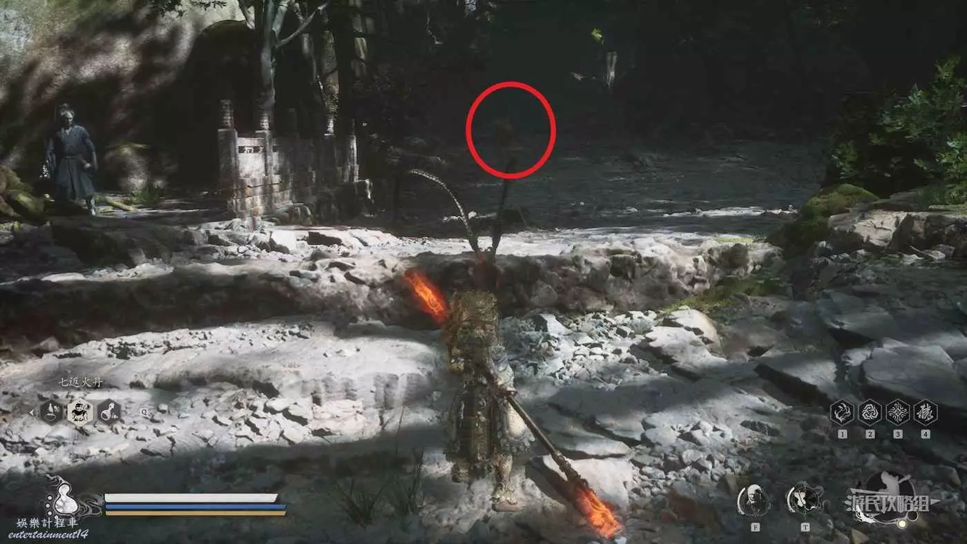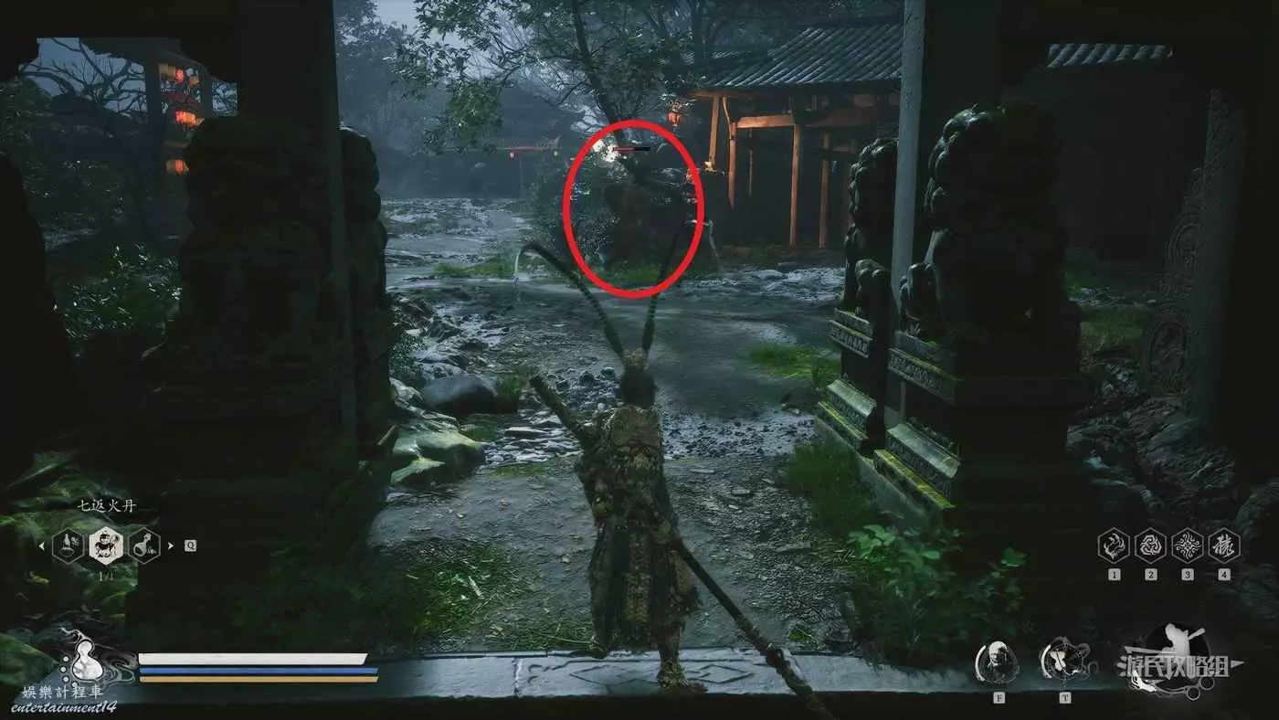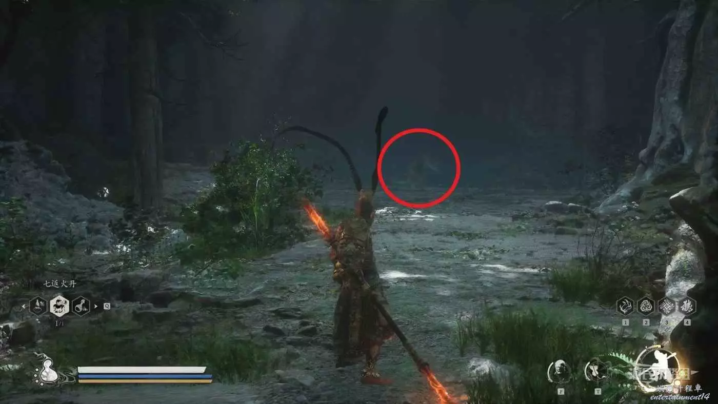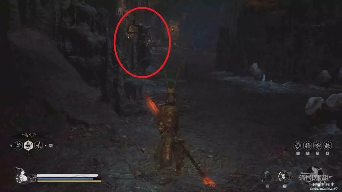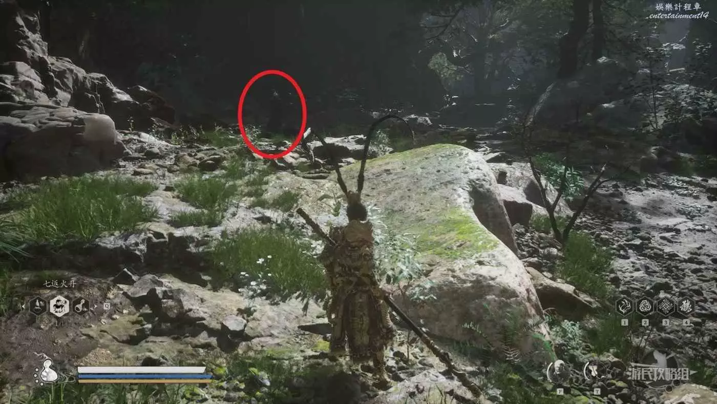 在道路左側一塊巨大的岩石後方可以看到這個敵人。在後續地圖還可以拿到它的精魄。