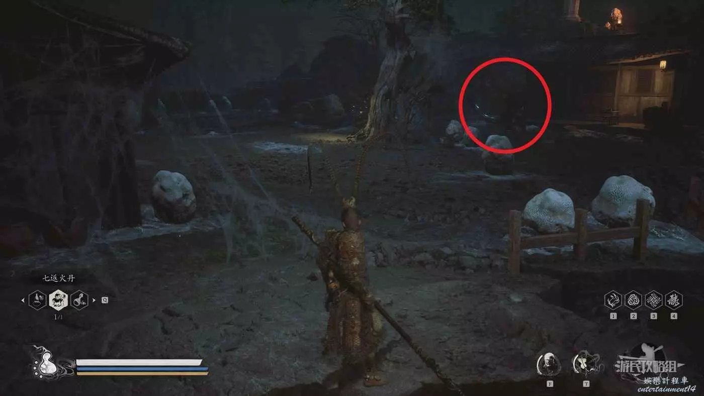 跟隨主線劇情來到第四回,沿著主路進入蘭喜村的大門後,往門內左側的一堆提燈處看,有一隻巡邏的幽燈鬼。後續地圖中還可以拿到幽燈鬼的精魄。