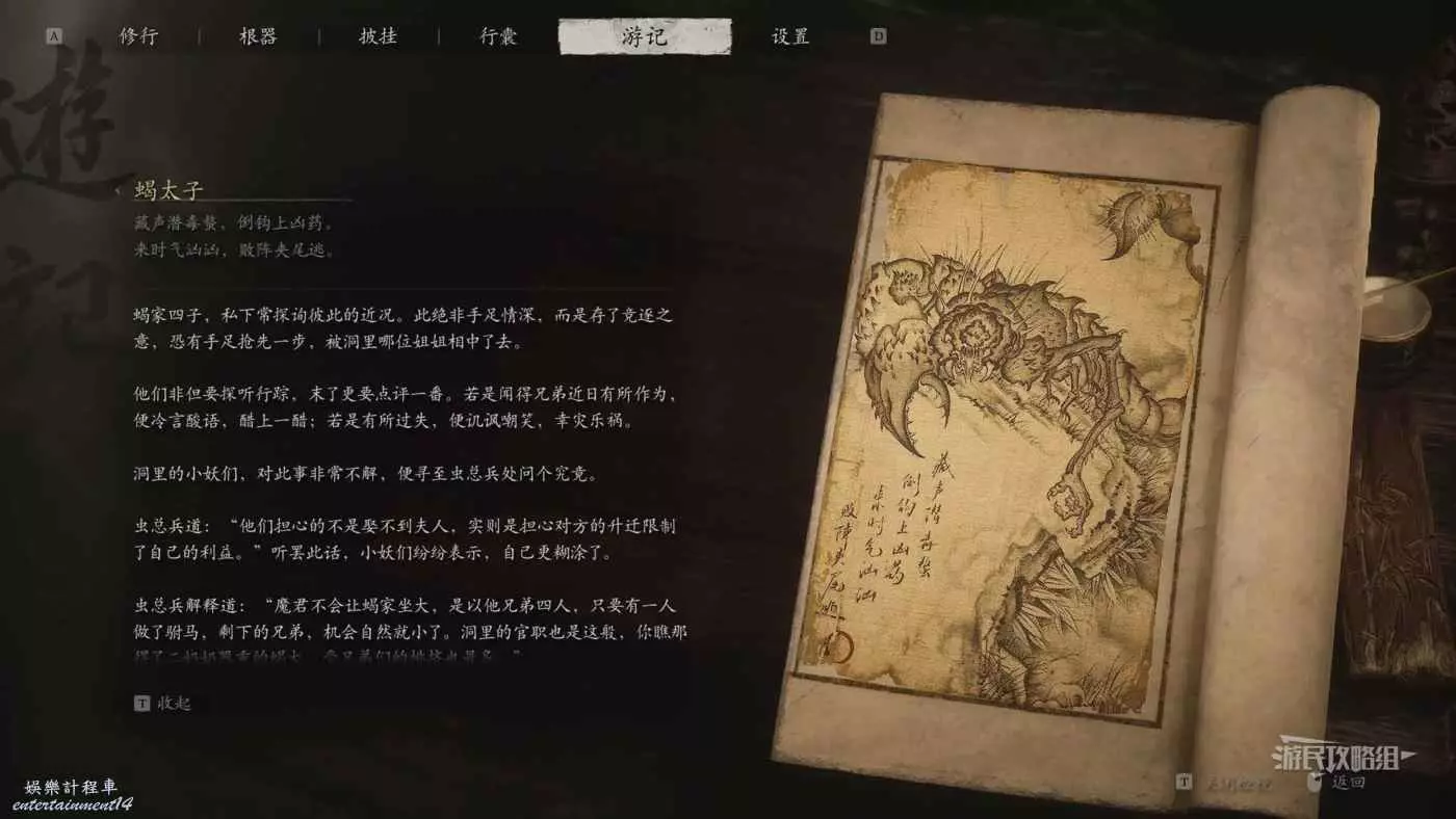 沿著樓梯走到上層的樹附近,蠍太子就圍著樹繞圈,擊敗的同時還可以獲得精魄,同時可以獲得泡酒物【倒馬毒鉤】。