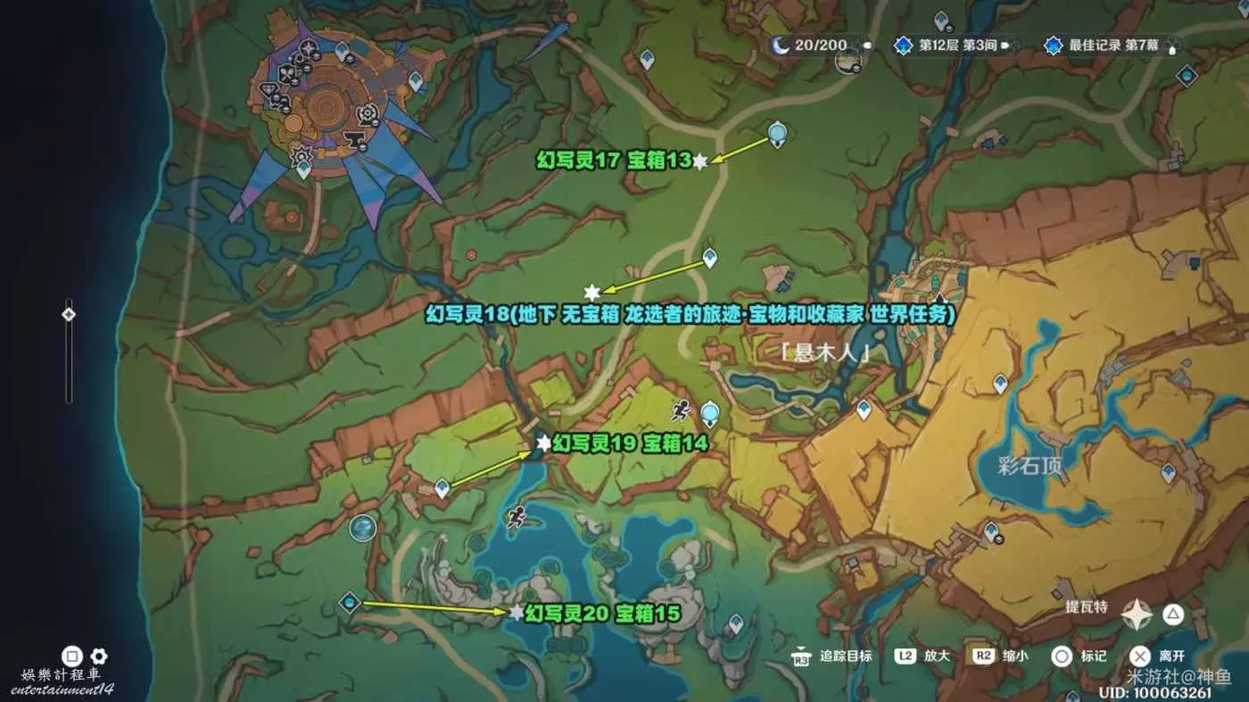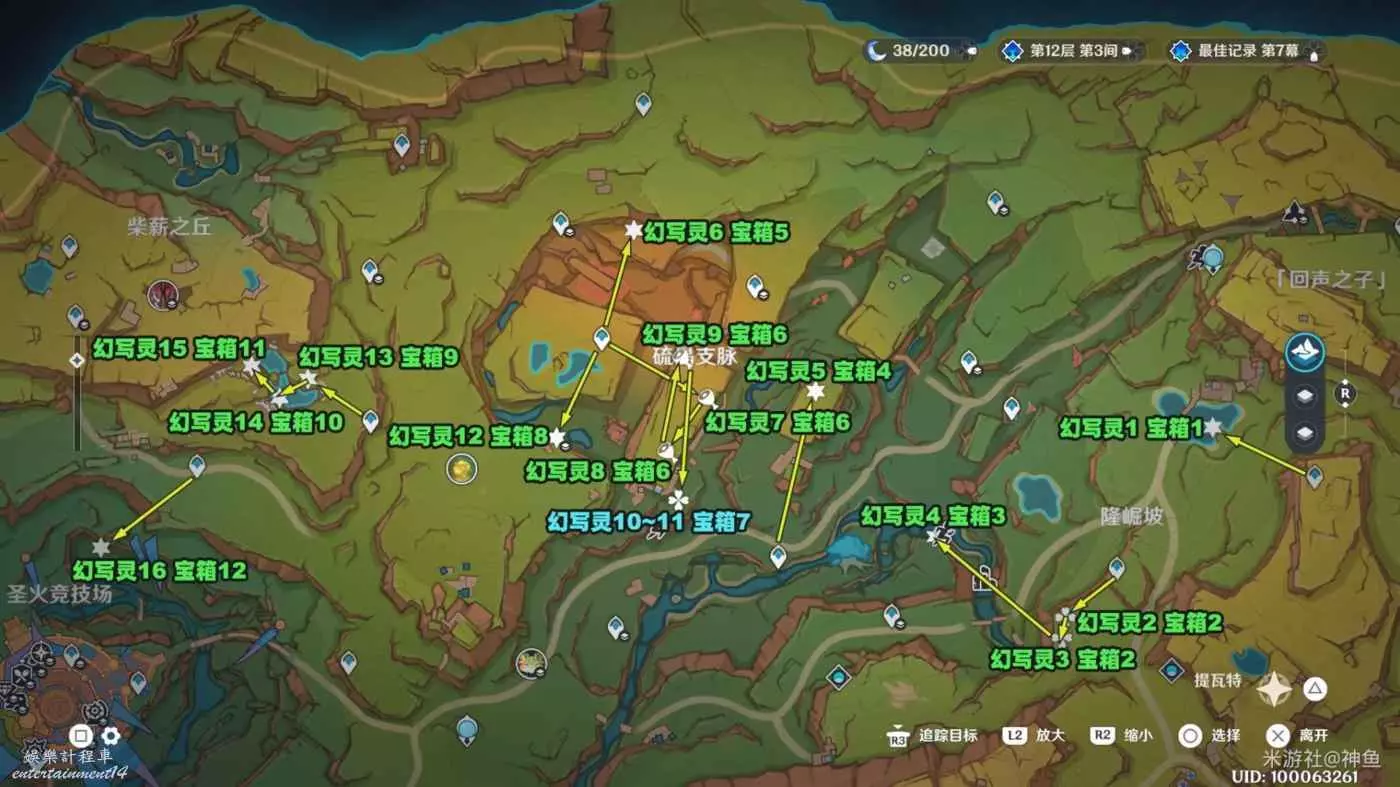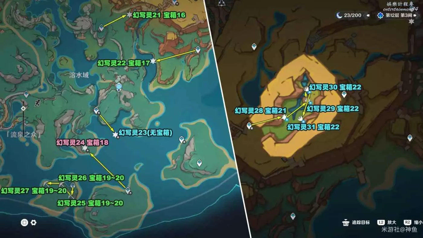 原神 (Genshin Impact) 5.0幻寫靈收集路線分享 19 9 月 2024-09-19 廣告 作者:神魚 來源:米遊社論壇 5.0納塔共有47個「幻寫靈」,成就數40。 配隊思路 輸出角色+卡齊娜。卡齊娜在做魔神任務·第五章·第一幕的過程中免費領取,沒推到這裡的朋友可以通過快速體驗功能來獲取。 分佈圖 綠字=地上幻寫靈;藍字=地下幻寫靈;粉字=天上幻寫靈 六角星=1個幻寫靈=0/1個寶箱;四葉草=2個幻寫靈=1個寶箱;雞腿=3個幻寫靈=1個寶箱;鋤頭=3個幻寫靈=2個寶箱 1~16 17~20 21~31 32~40