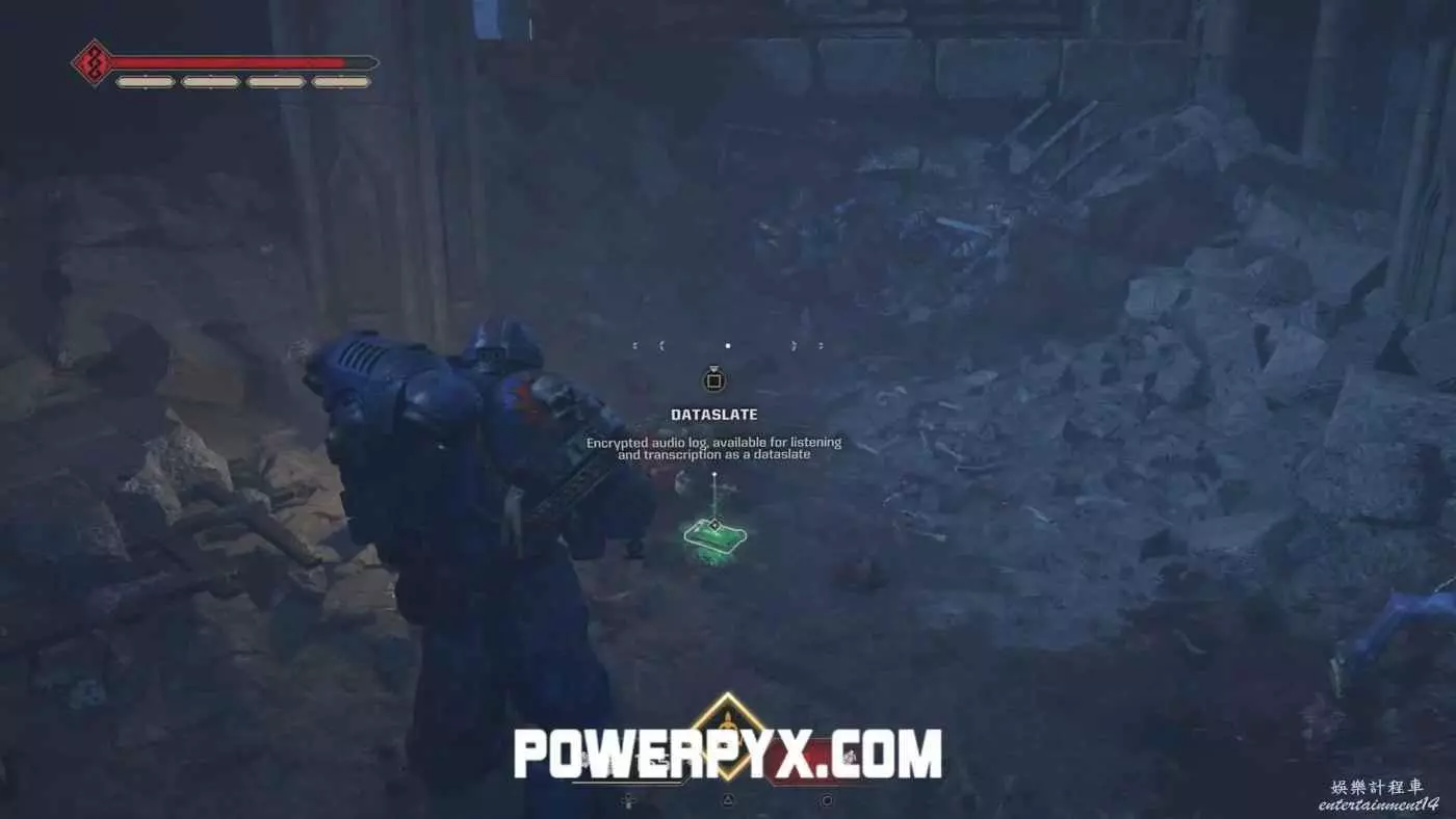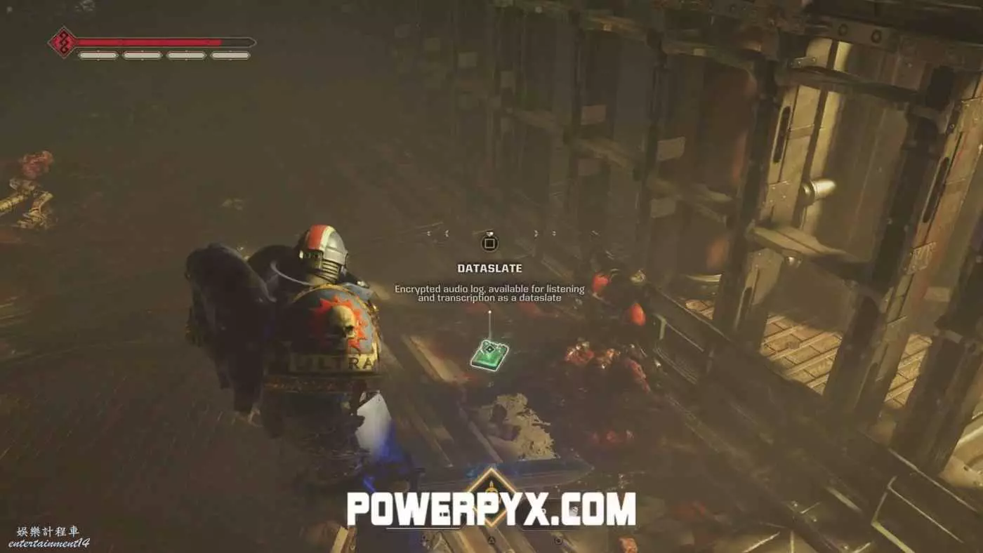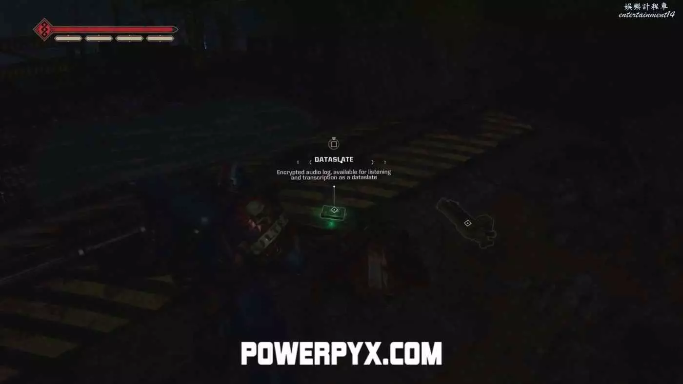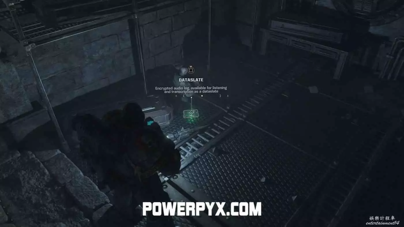 此資料板在前往任務目標“前往機械修會建築”的路上,啟動兩個終端並走了一段很長的路之後(跳下洞口),不要往任務標記位置走,往相反方向走即可看到資料板。