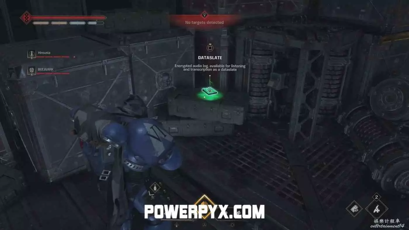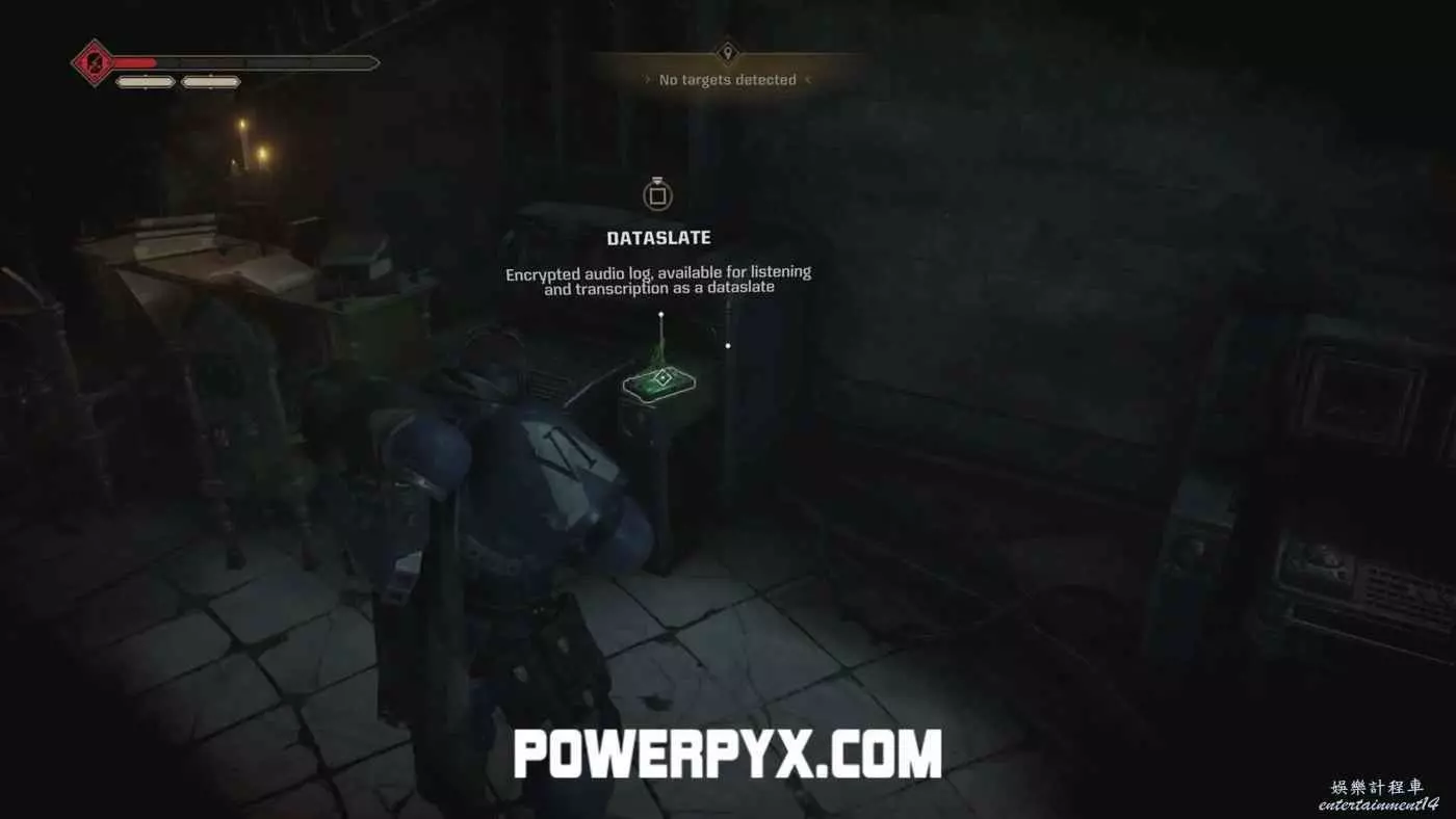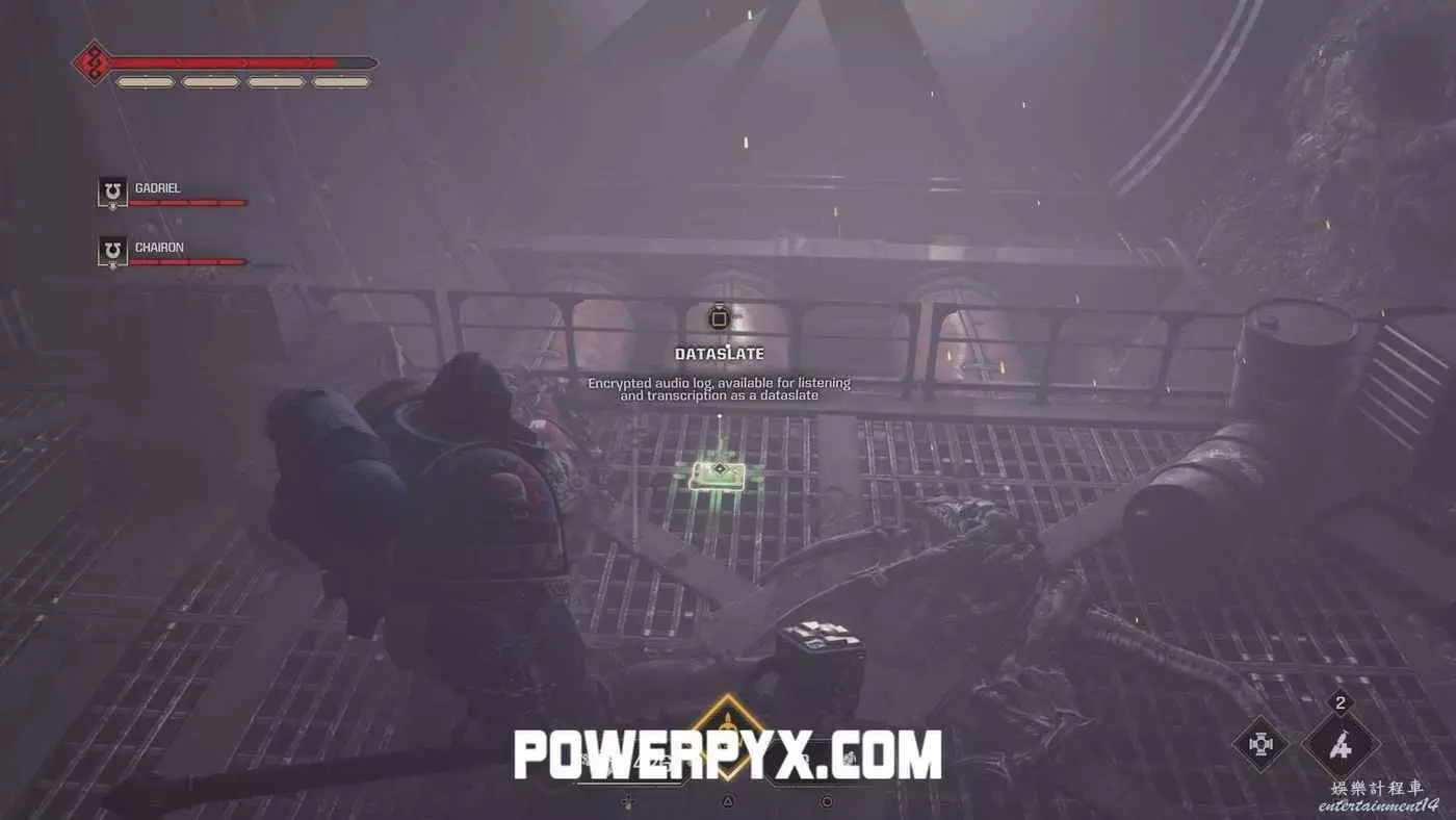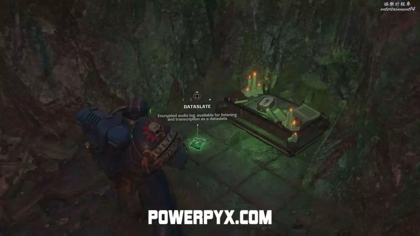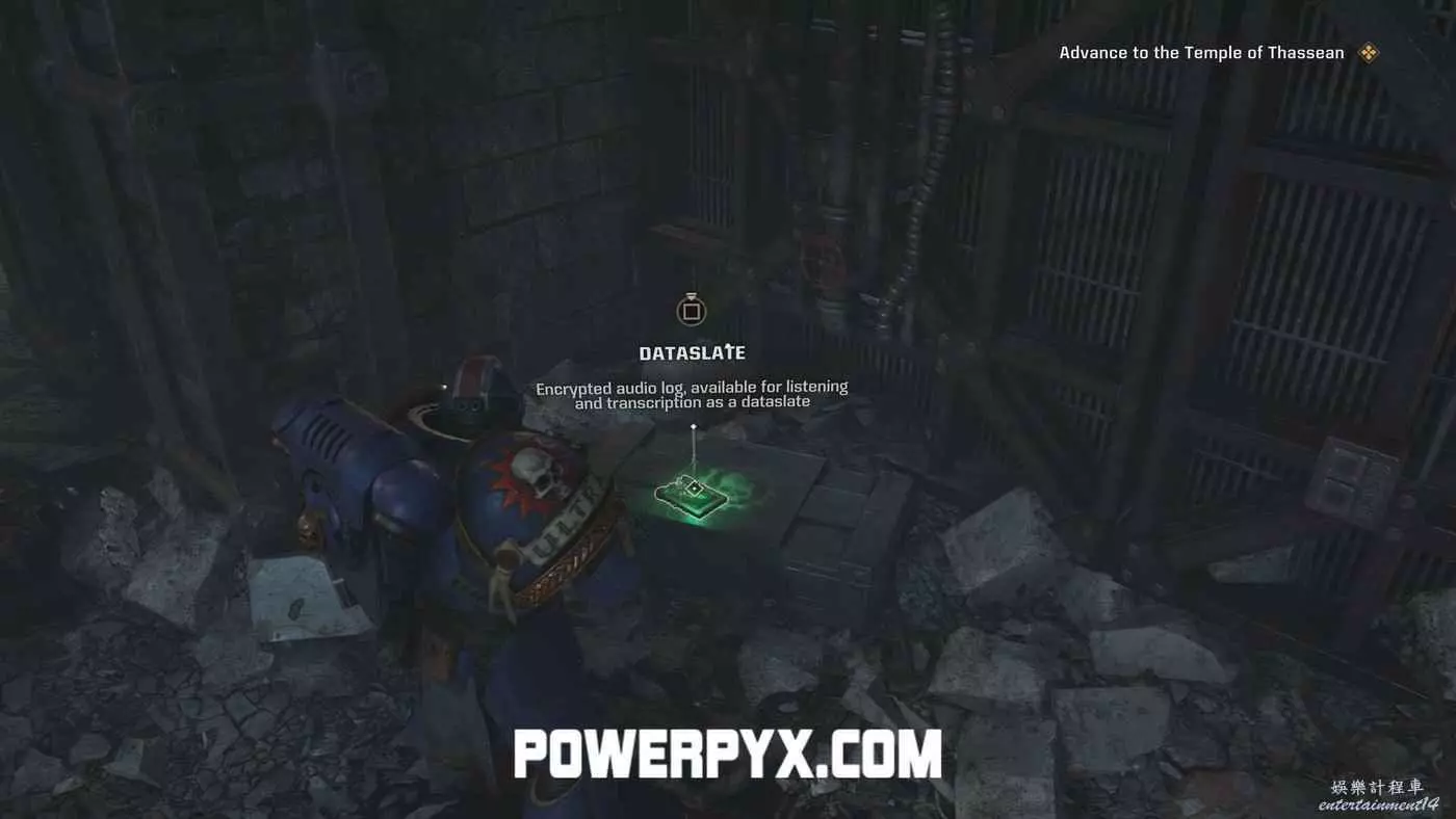 此資料板在前往任務目標“前往機械修會建築”的路上,啟動兩個終端並走了一段很長的路之後(跳下洞口),不要往任務標記位置走,往相反方向走即可看到資料板。