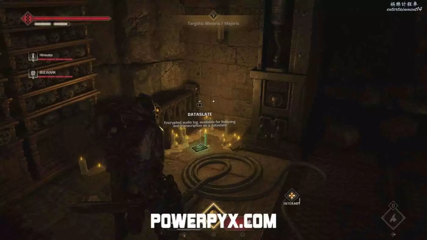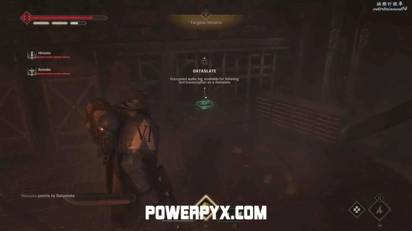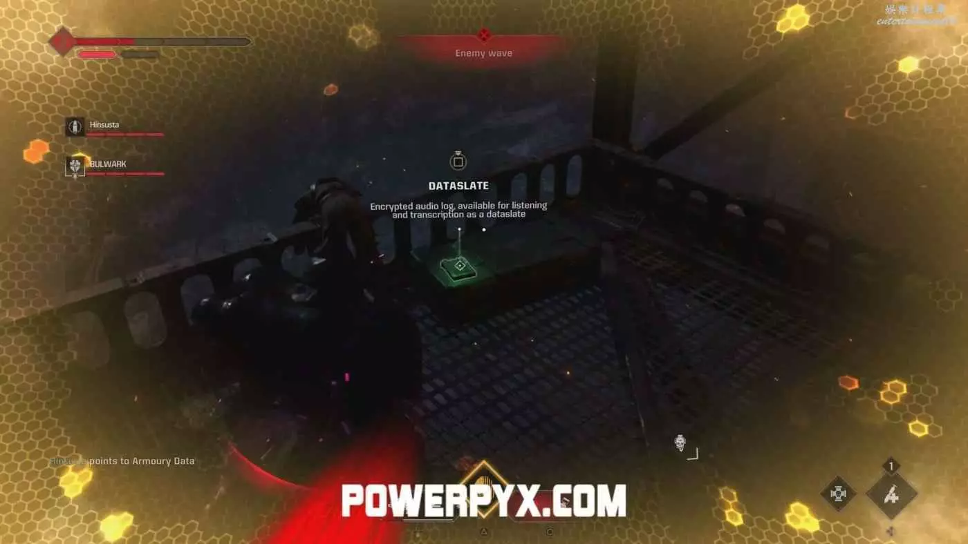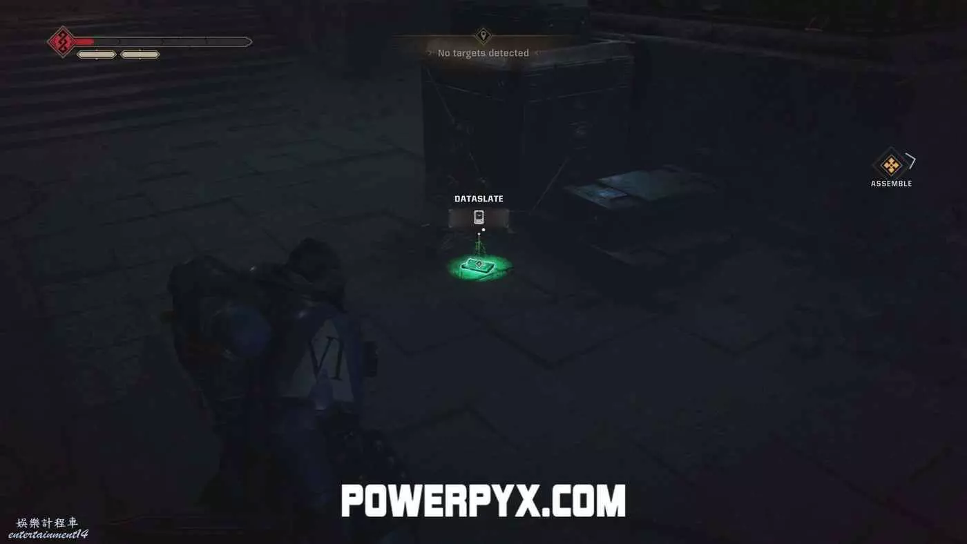 此資料板在前往任務目標“前往機械修會建築”的路上,啟動兩個終端並走了一段很長的路之後(跳下洞口),不要往任務標記位置走,往相反方向走即可看到資料板。