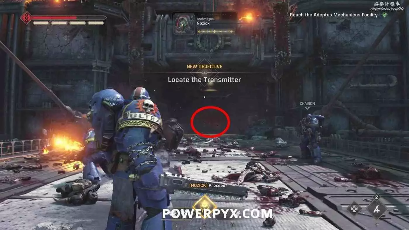 在守衛中繼站並擊敗BOSS後,必須進入電梯,乘坐電梯後沿著前方的樓梯往下走,可以看到3個士兵正在對實體使用火焰噴射器,在他們右側樓梯後面的角落裡可以找到資料板。