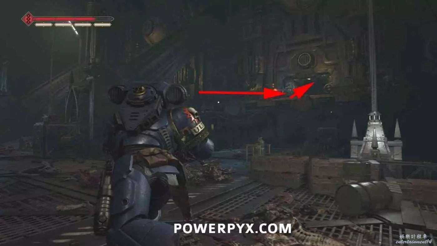 擊敗BOSS劊子手後,穿過下一個區域,來到一座長長的金屬大橋(主路),穿過金屬大橋後與牆板互動,抵禦敵人並等待大門打開。開門之後一直走到走廊盡頭,在右邊角落裡可以找到這塊資料板,確保在進入電梯之前拿到。