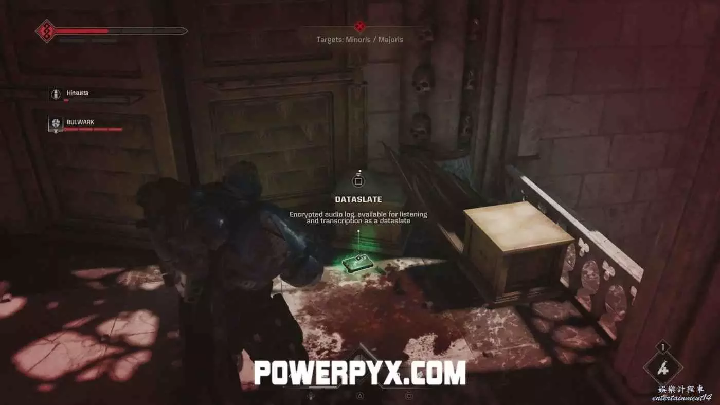 在前往任務目標“調查大教堂更低樓層”的主路上,乘坐電梯往下三層時,可以在底層找到資料板,就在區域旁邊的桌子上。注意此時不要靠近任務目標標記的方向,否則就無法返回收集這個資料板了。