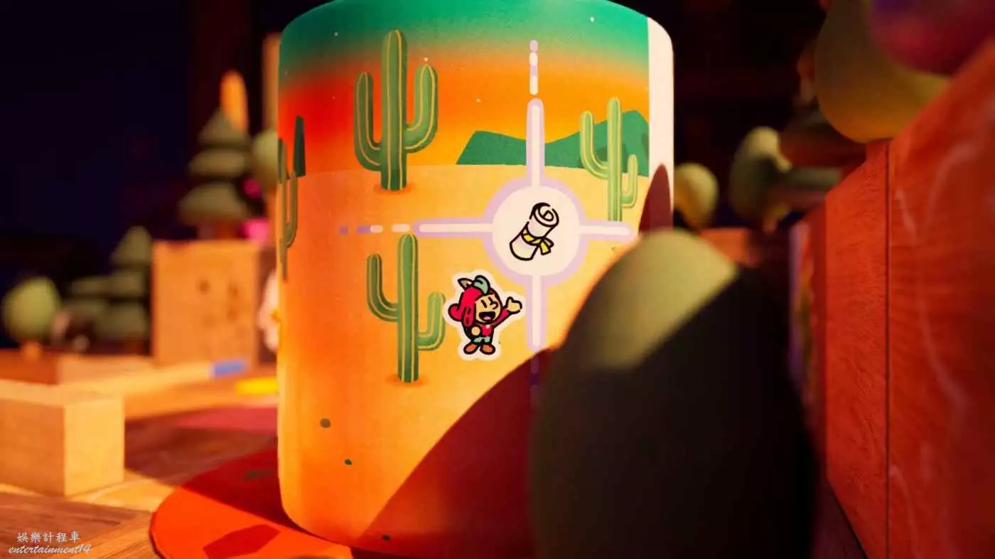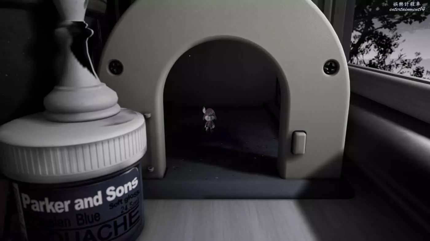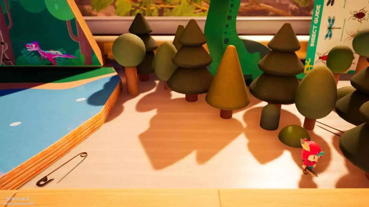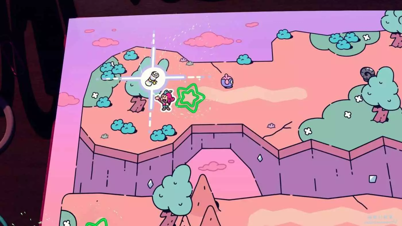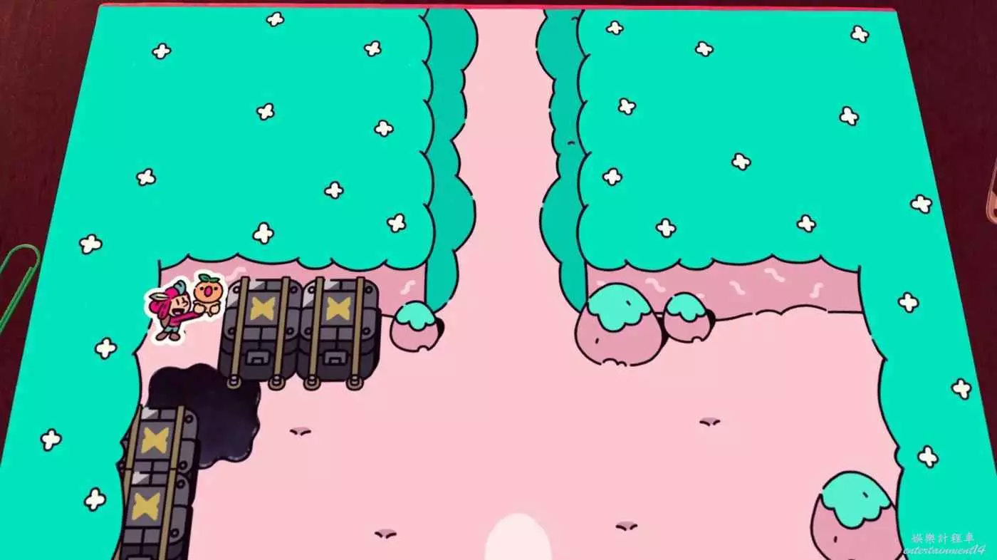 進入城鎮後,回到3D世界並往前翻兩頁,左側的空白處有傳送門,回到書本中進入房間