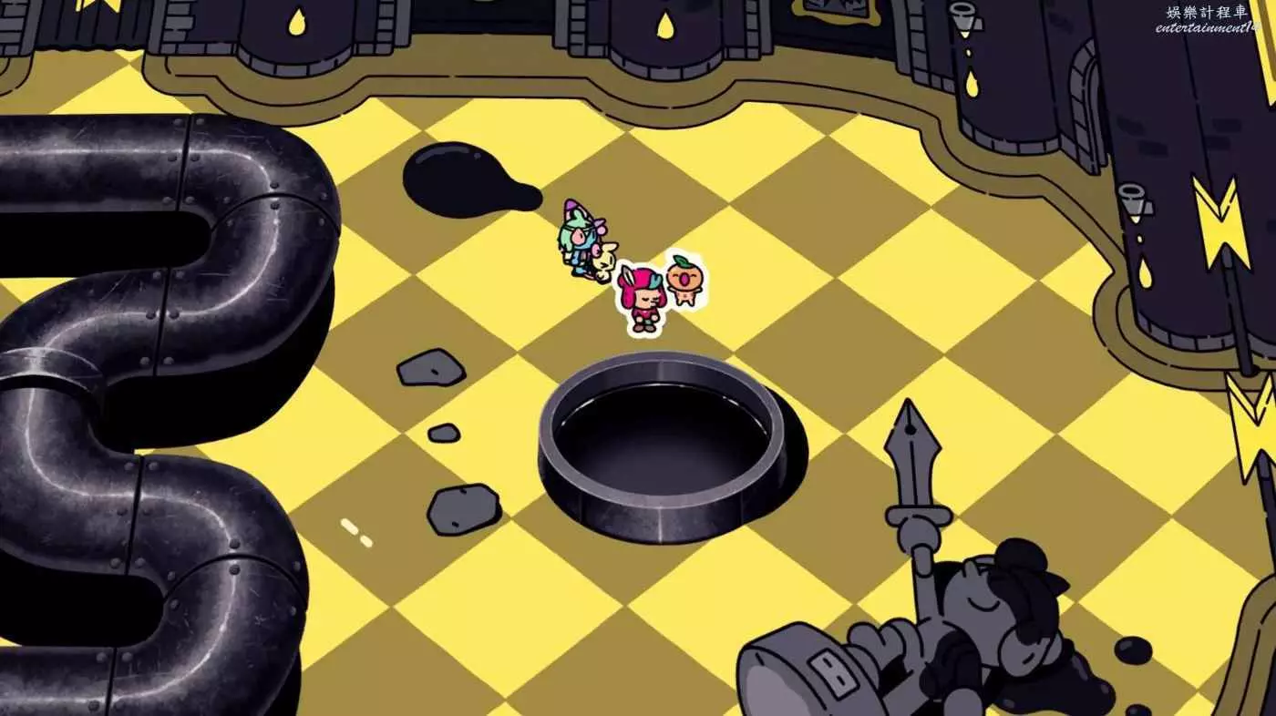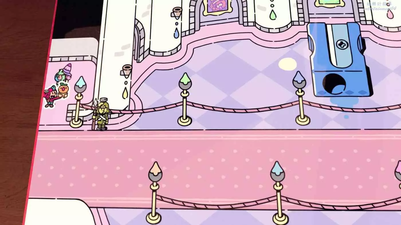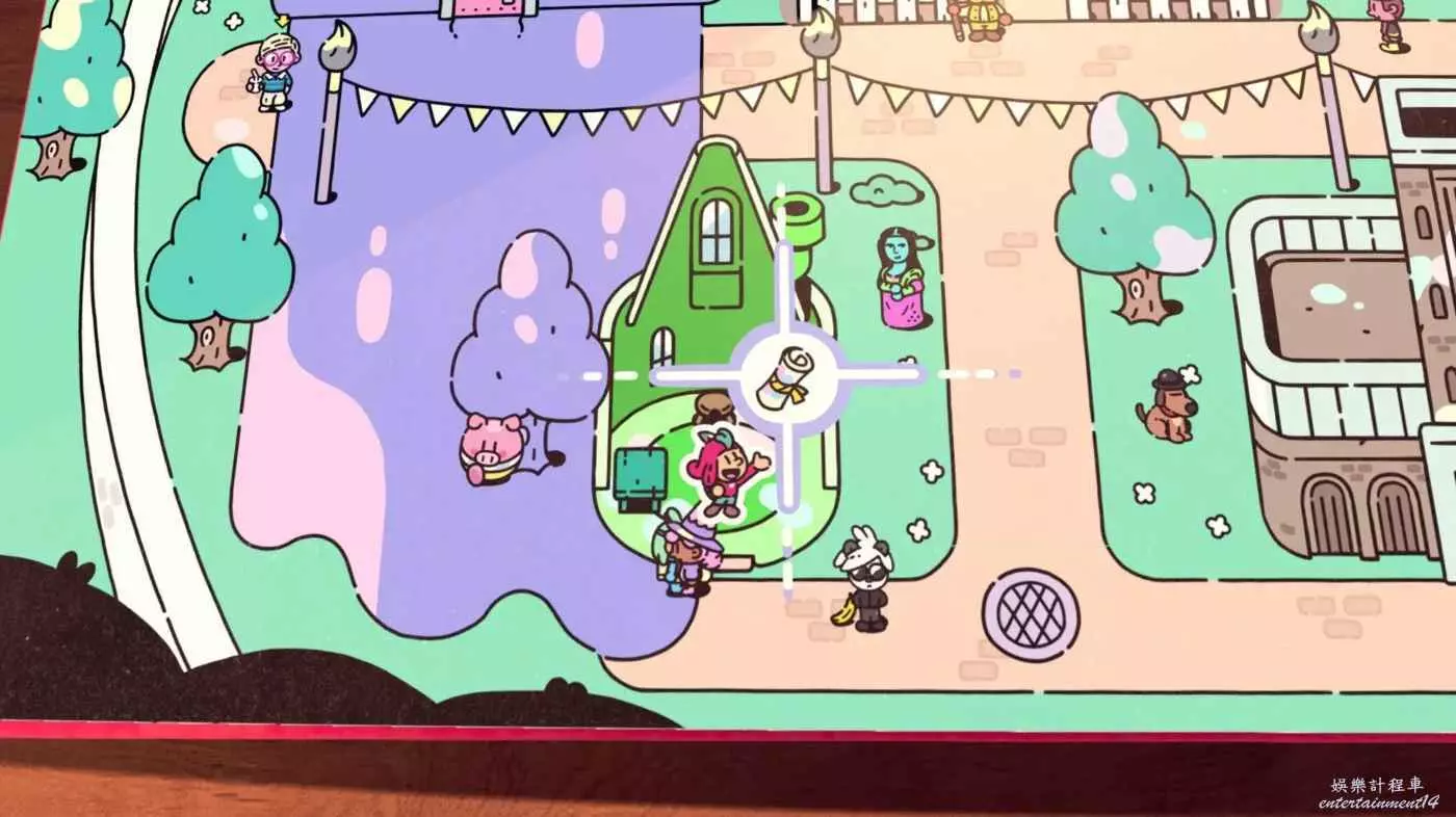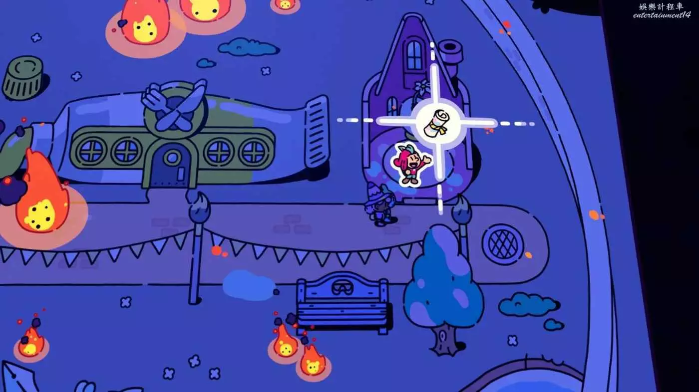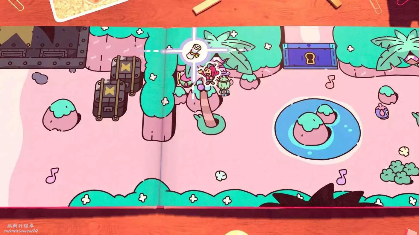 進入城鎮後,回到3D世界並往前翻兩頁,左側的空白處有傳送門,回到書本中進入房間