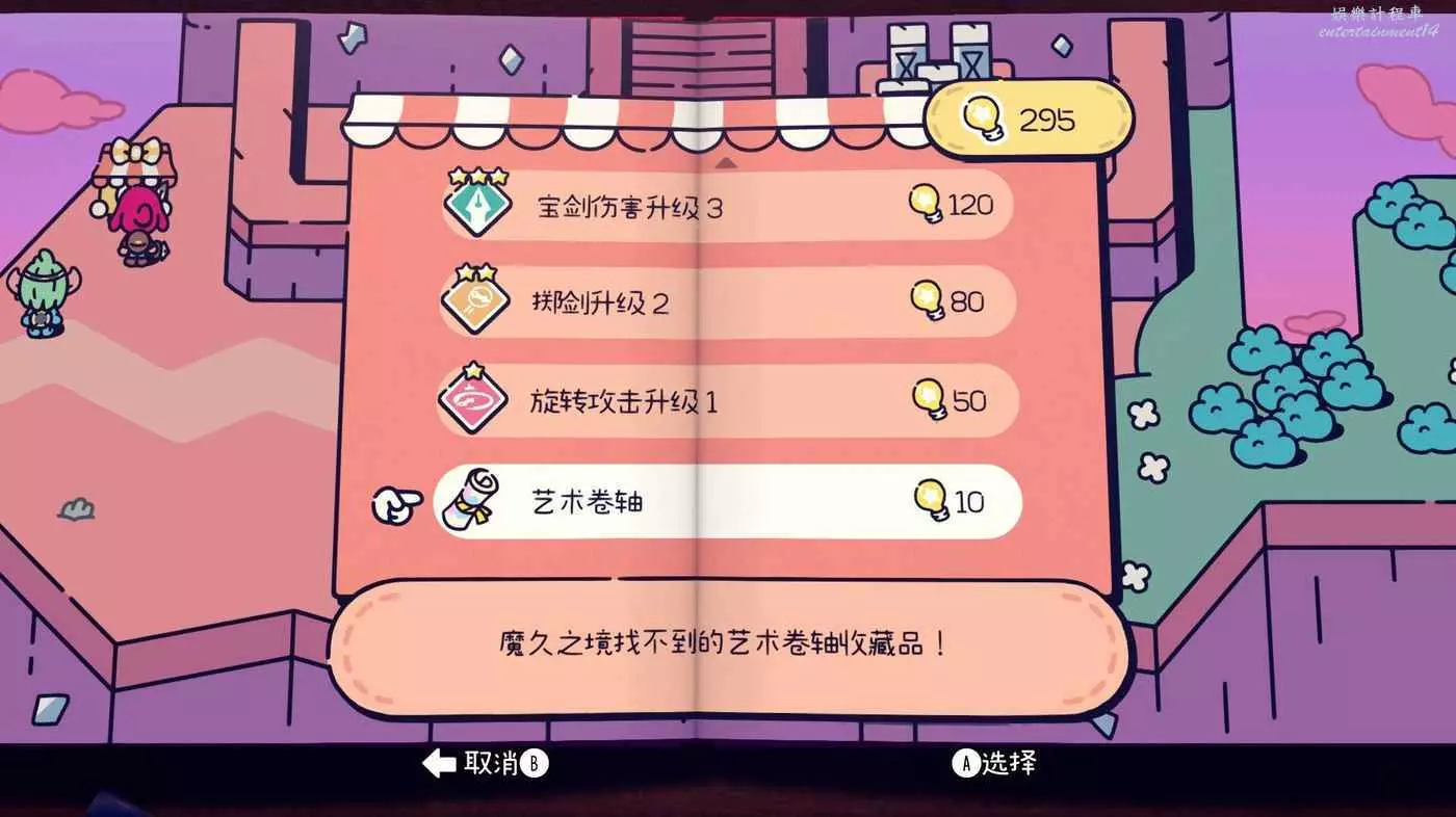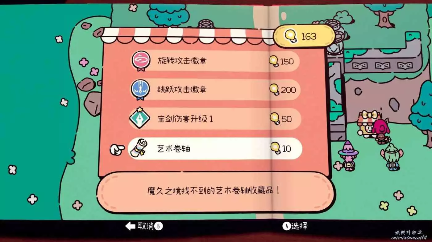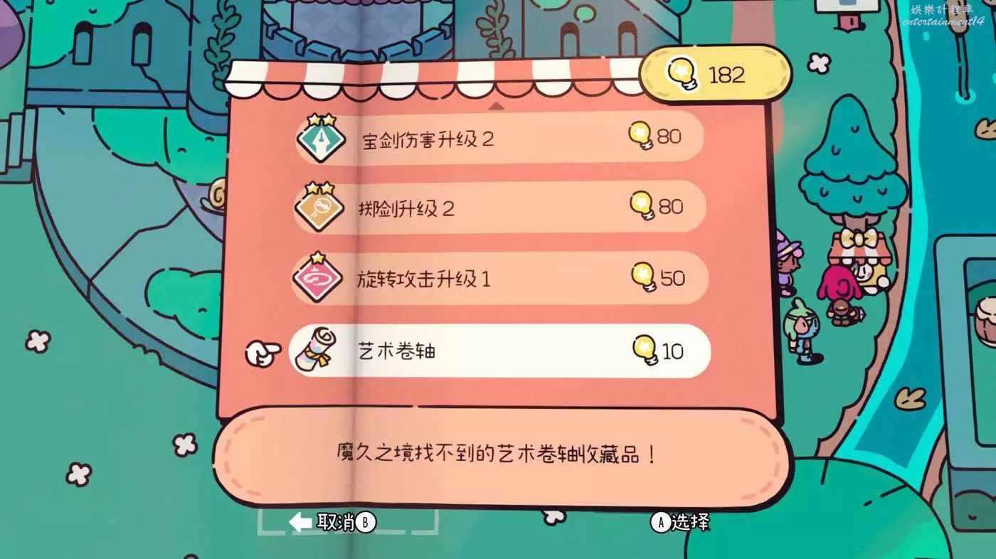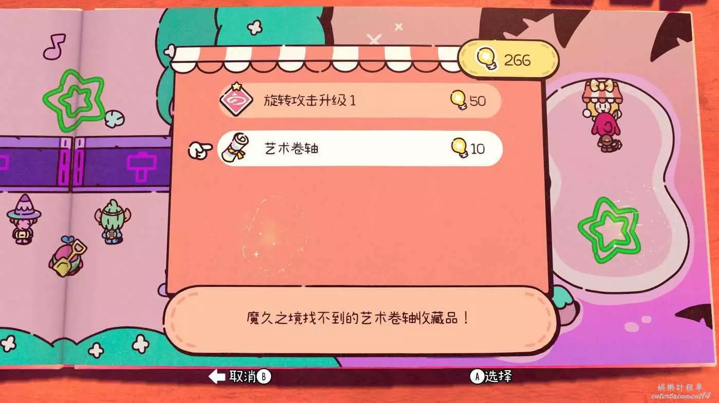 本作共有50個藝術卷軸收集,10個意外鳥收集。