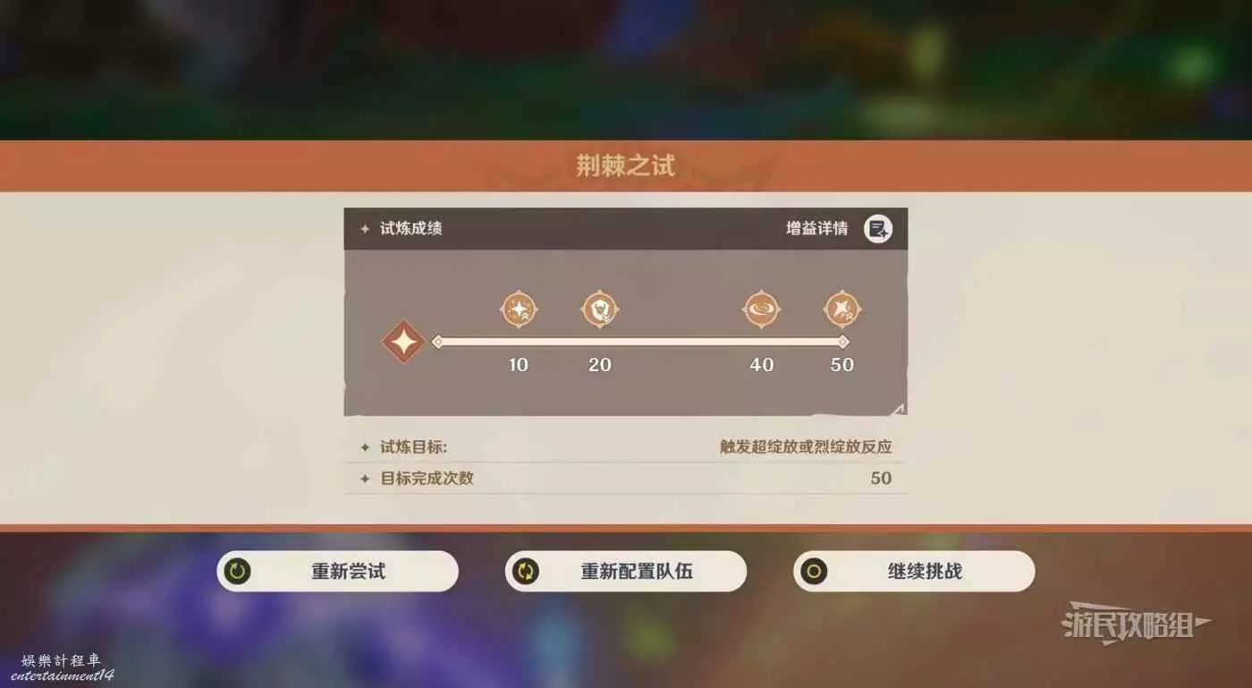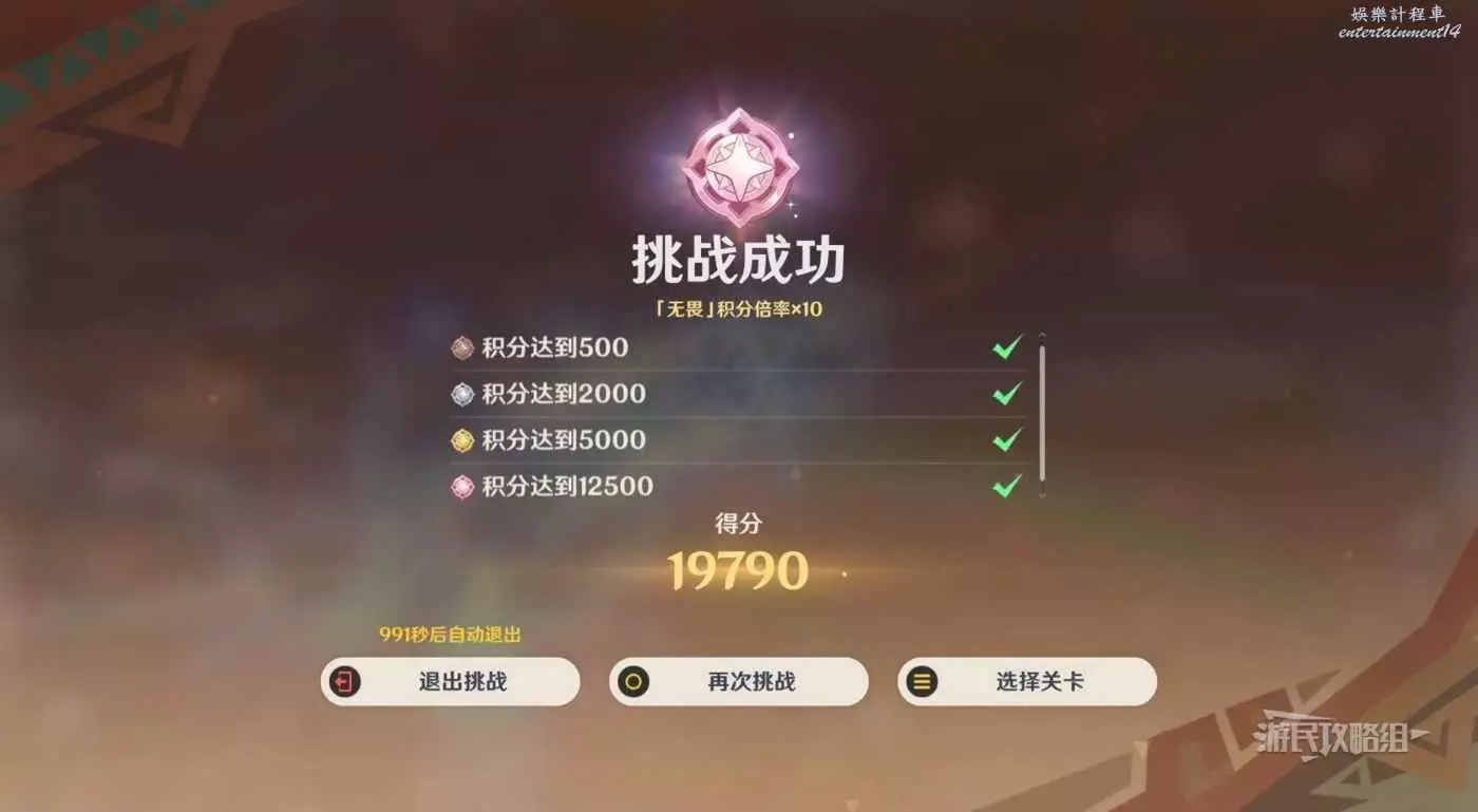 如果下半分數不達預期的話,還可以通過【選擇關卡】來重新配置下半陣容,無需重複挑戰上半。注意不要點下方的重置挑戰進度。