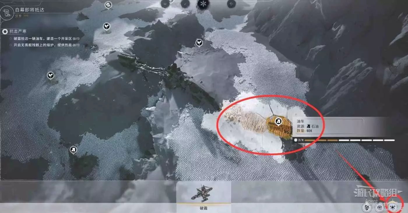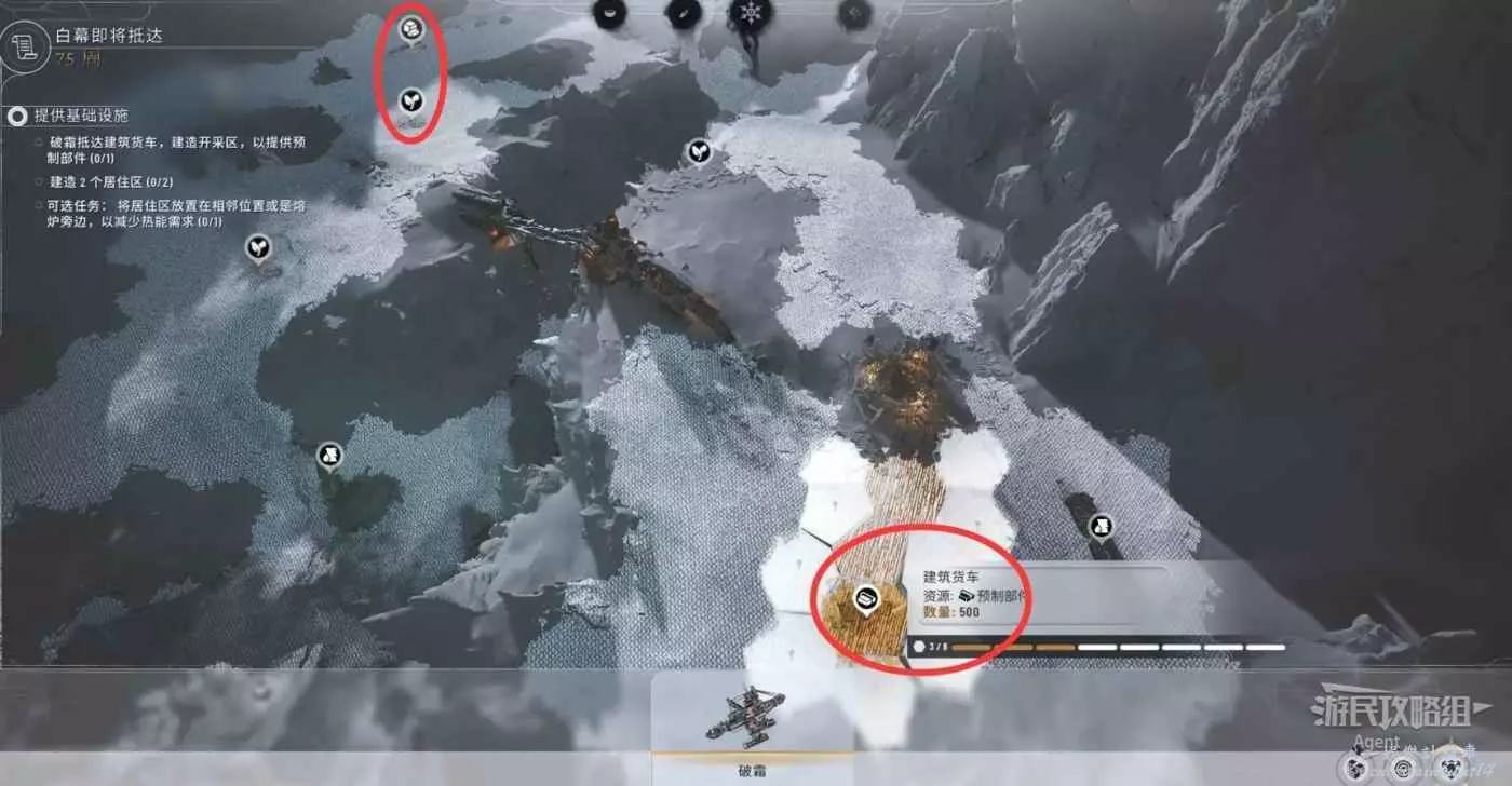 除了開採石油、食物、預製部件,繼續破霜去開採材料,盡可能多地採集地圖上的各種資源。