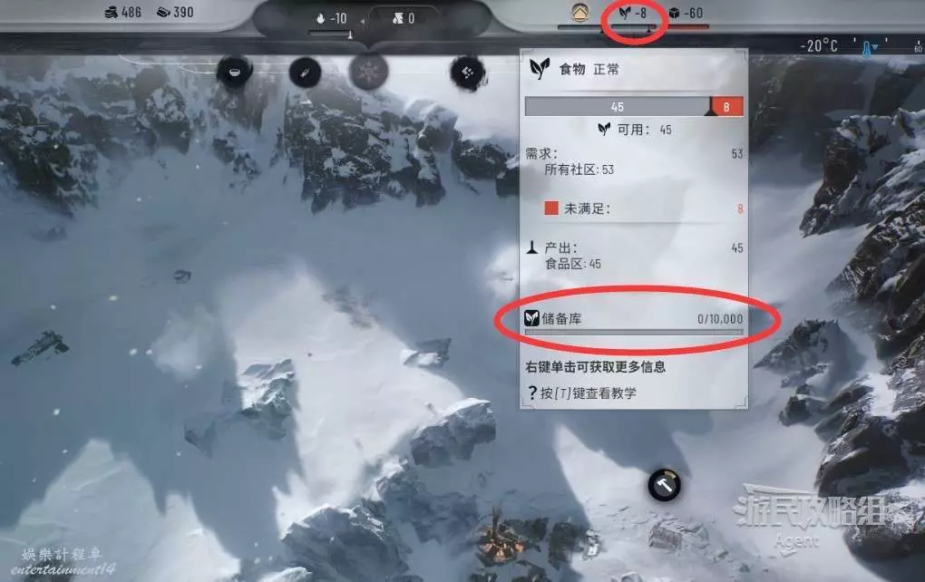 查看食物的儲備庫,發現上限只有1萬,而任務要求4萬。所以需要拓展儲備庫。
