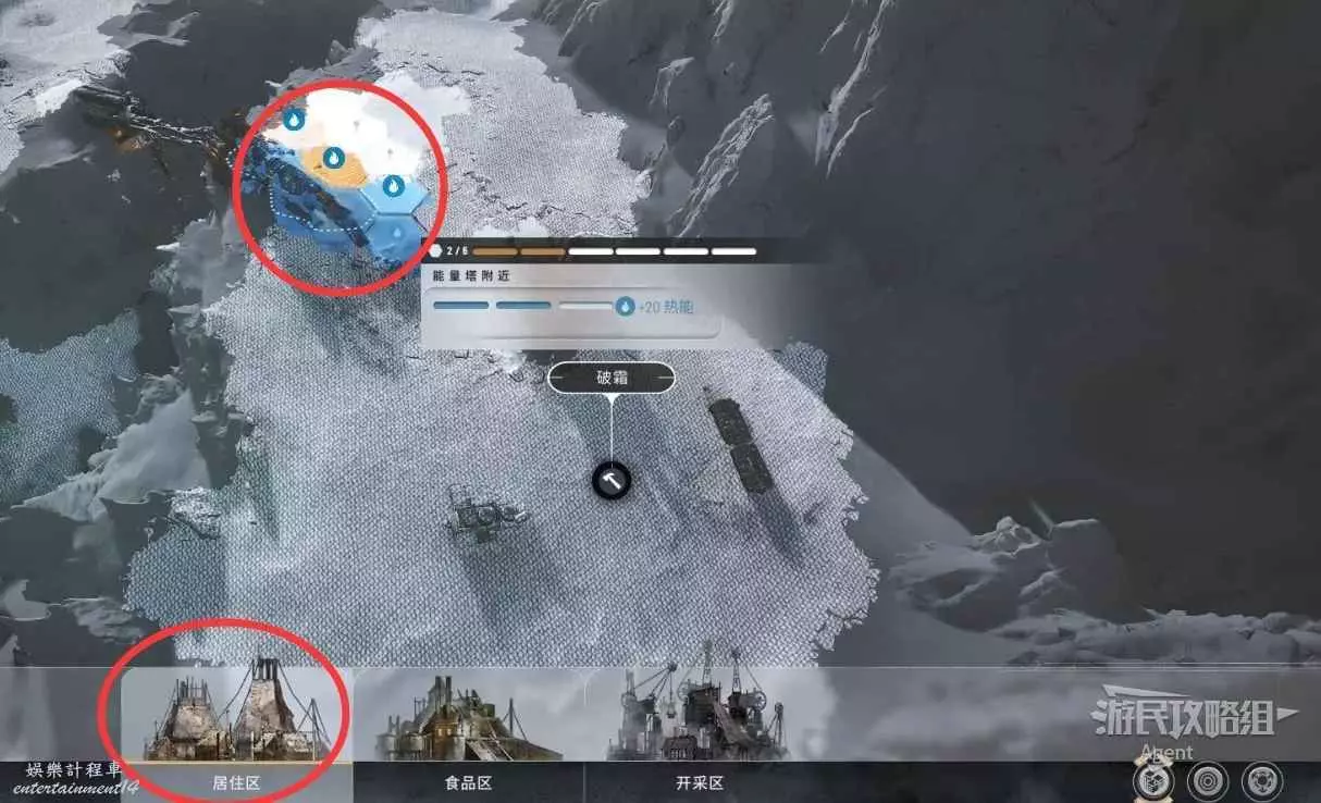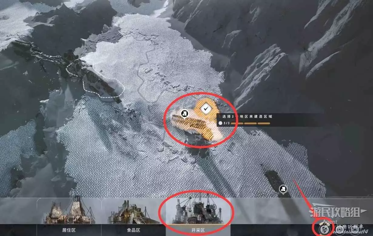 破霜完成後,點擊右下角的“建造區域”按鈕,選擇“開採區”。