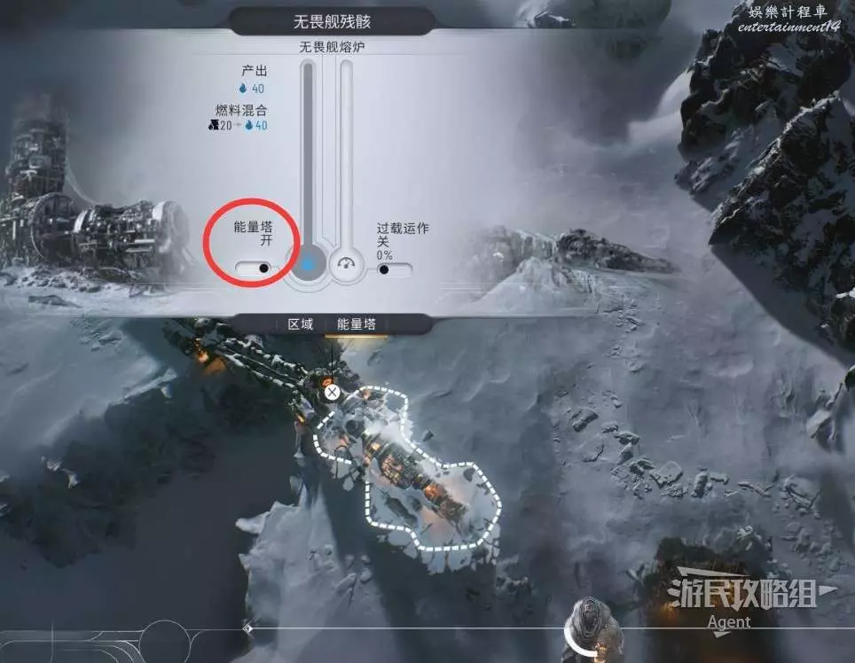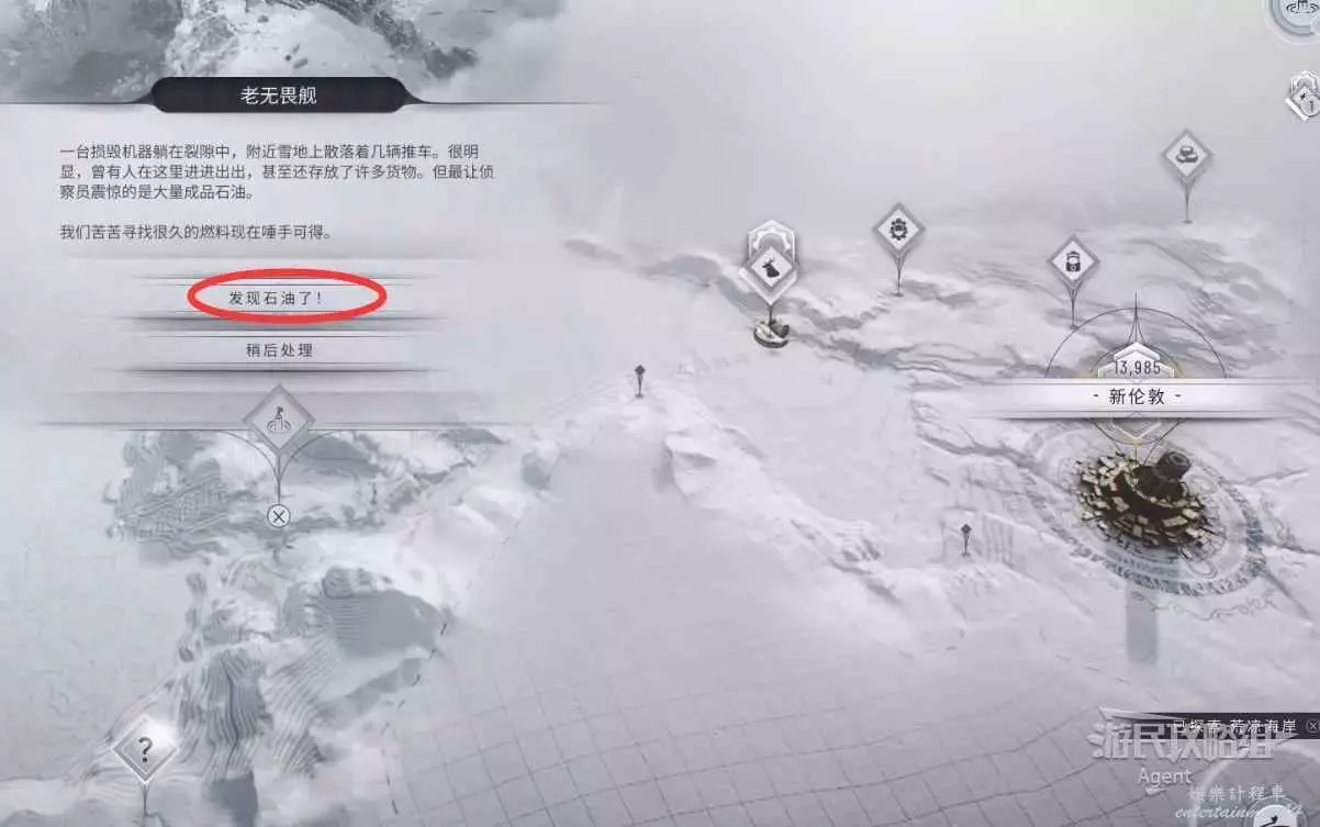 開採到石油後,點擊無畏艦殘骸,開啟能量塔。