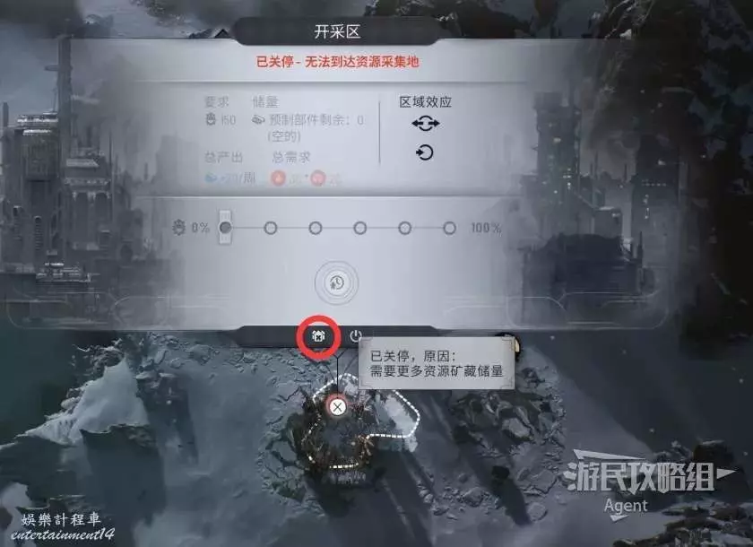 當資源耗盡時,開採區會關停,拆除建築可回收一部分資源。