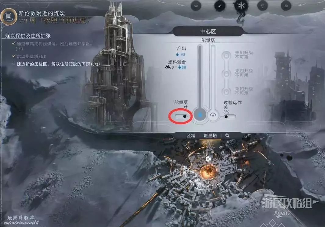 開採到煤炭後,開啟中心區的能量塔。