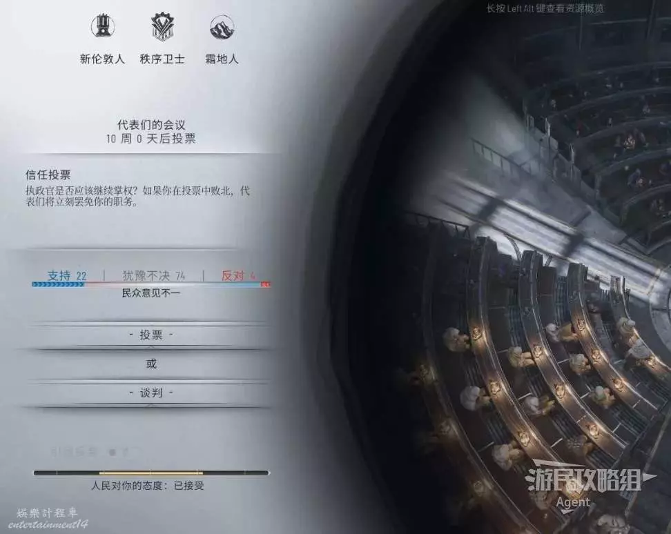建造議會廳,來解鎖議會,在議會可以投票通過各種法律。