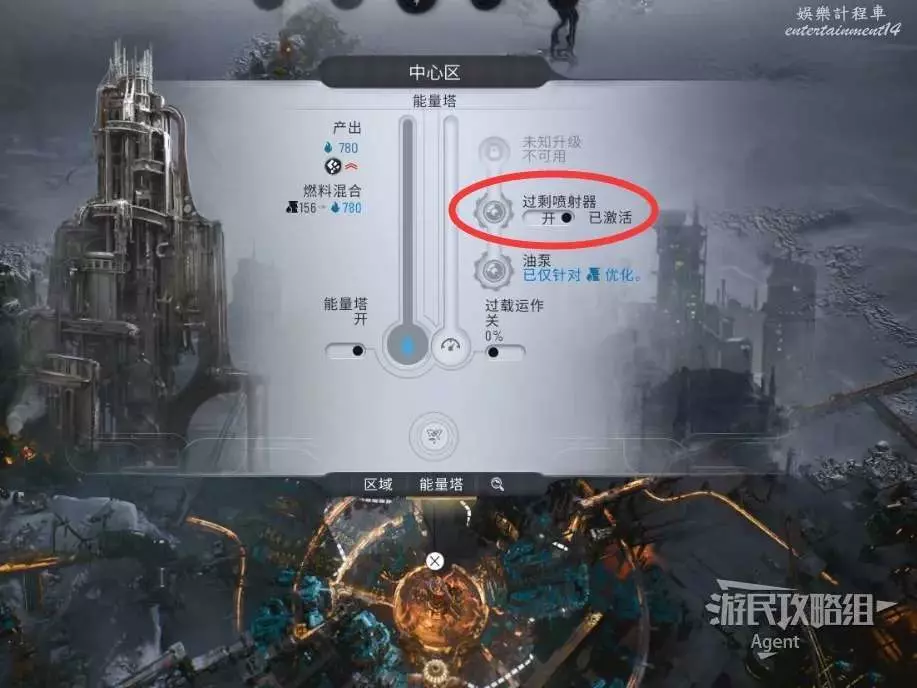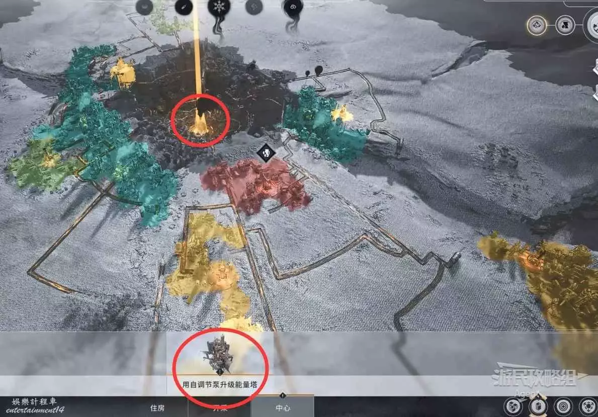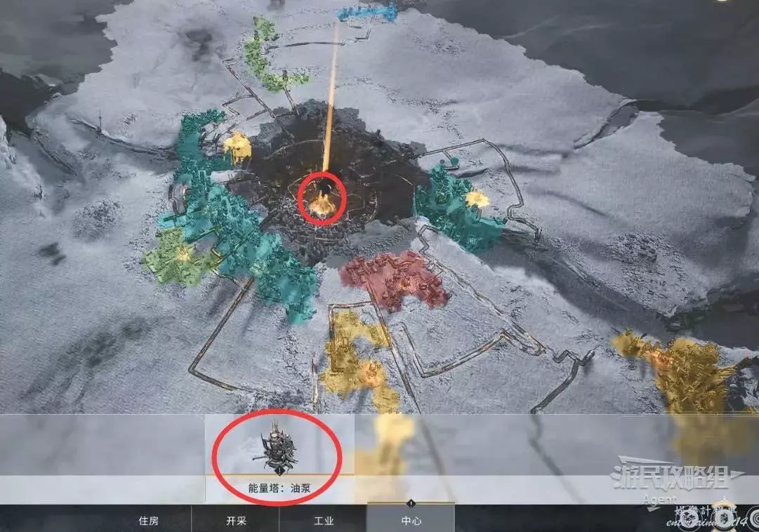 然後在中心區建造油泵,提升石油的利用效率。但是注意,使用這個升級後,能量塔就無法使用煤炭了。