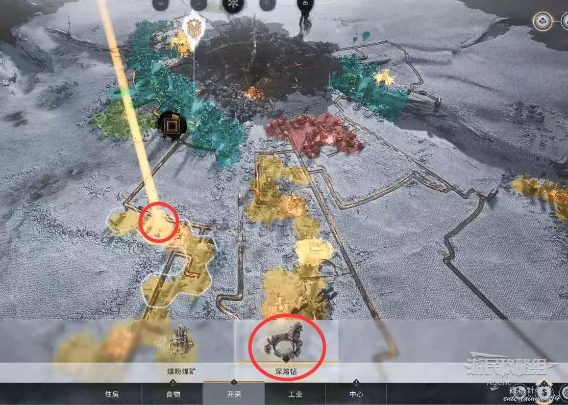 在思維樹研究深層採集地熔煉,解鎖深熔鑽後,在開採區建造深熔鑽。
