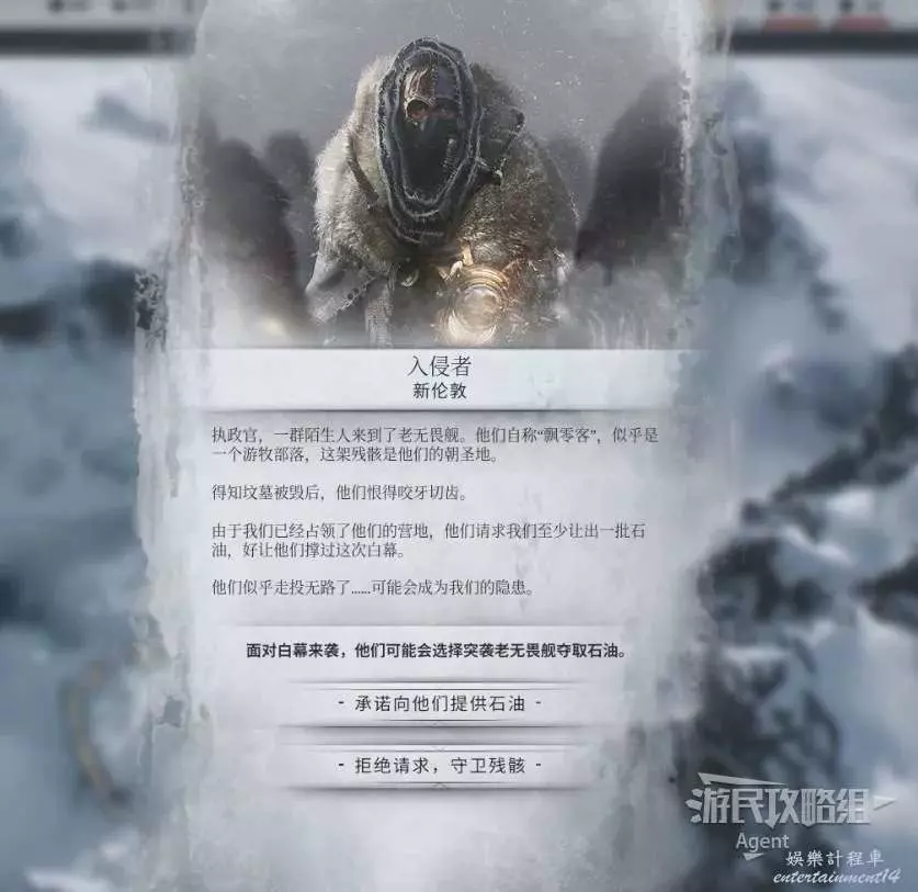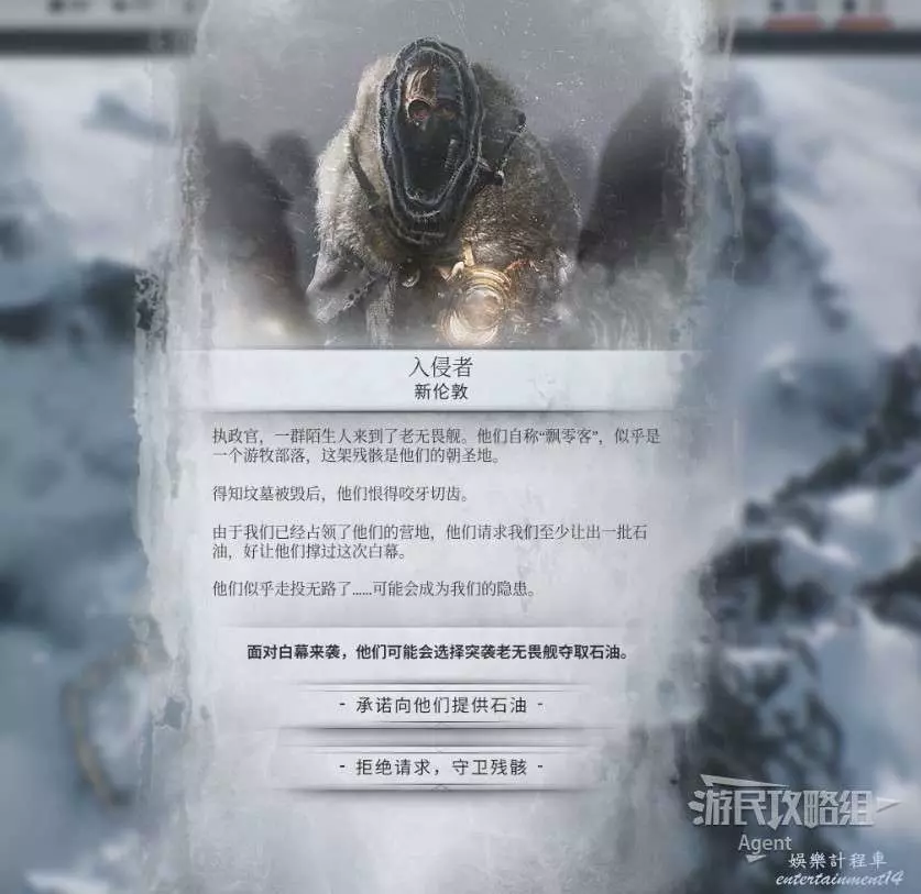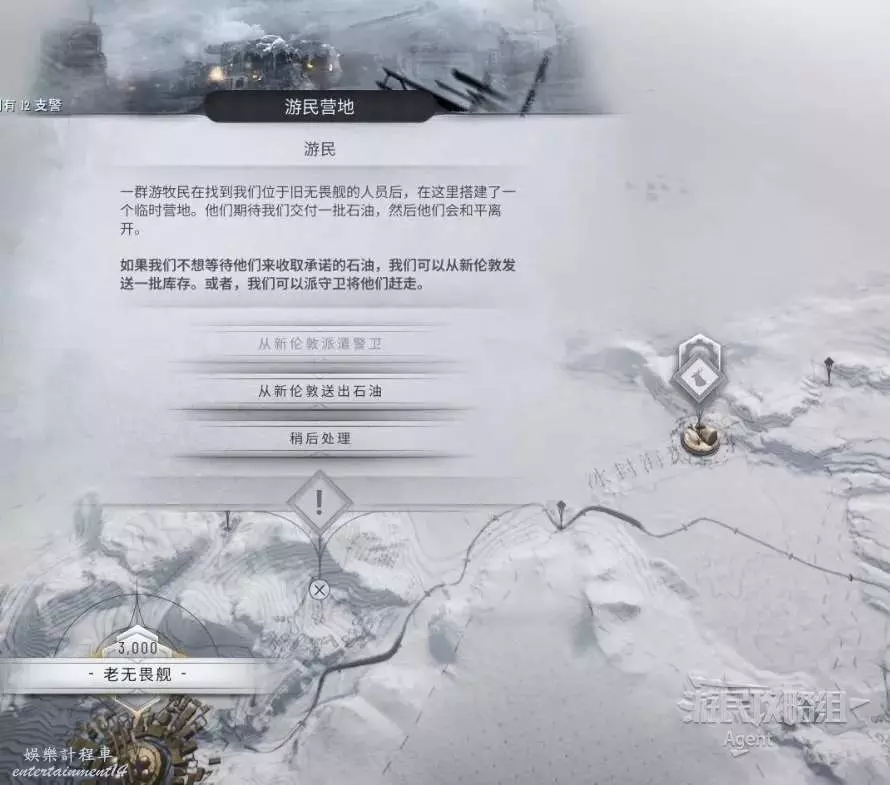 在地圖上可以找到入侵者的營地,可以從新倫敦送3萬石油過去,也可以派警衛隊過去。