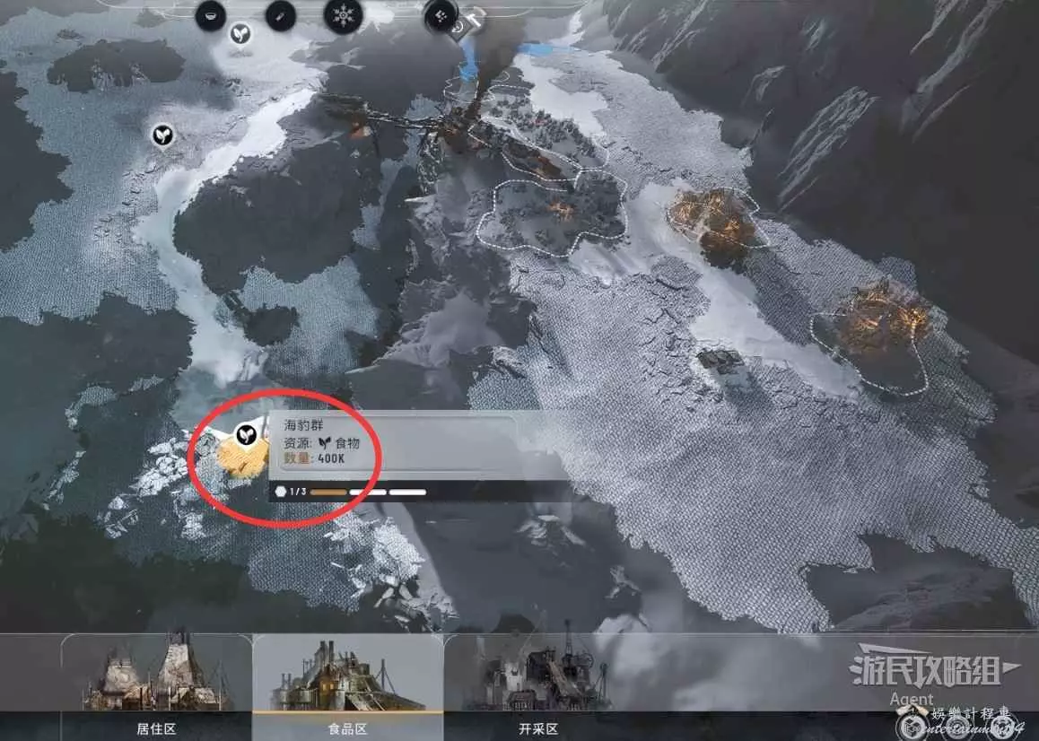海豹群在比較遠的地方,圖示也顯示為食物。